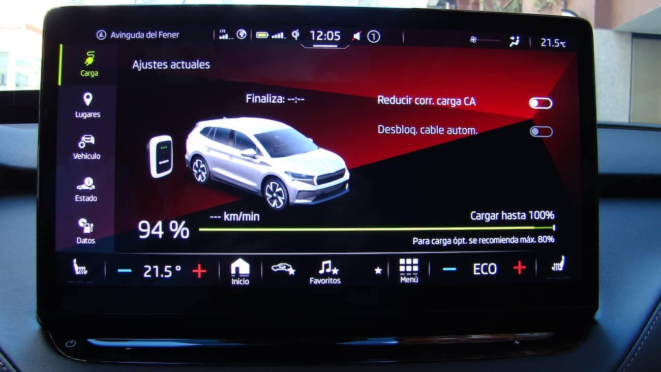 Respecte de la recàrrega, no vam tenir l’ocasió de fer-ne cap. En tot cas, dir-vos que depenent de la versió el Enyaq pot tenir càrrega ràpida a 50, 100 o 125 kW. En el millor dels casos, amb 125 kW de potència es pot recarregar la bateria fins a un 80% en menys de 40 minuts.