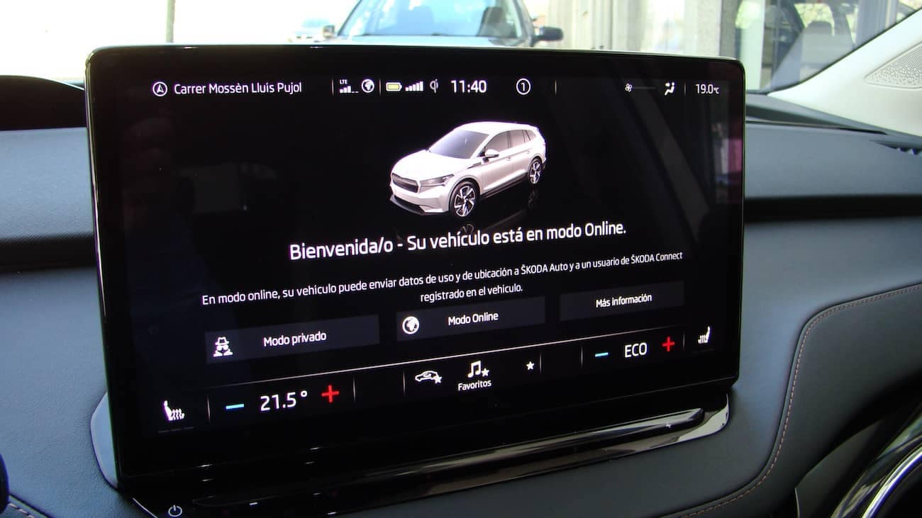 El cotxe incorpora serveis Škoda Connect. Aquests serveis permeten comprovar des del mòbil l’autonomia, activar l’aire condicionat o controlar l’estat de la recàrrega de la bateria.