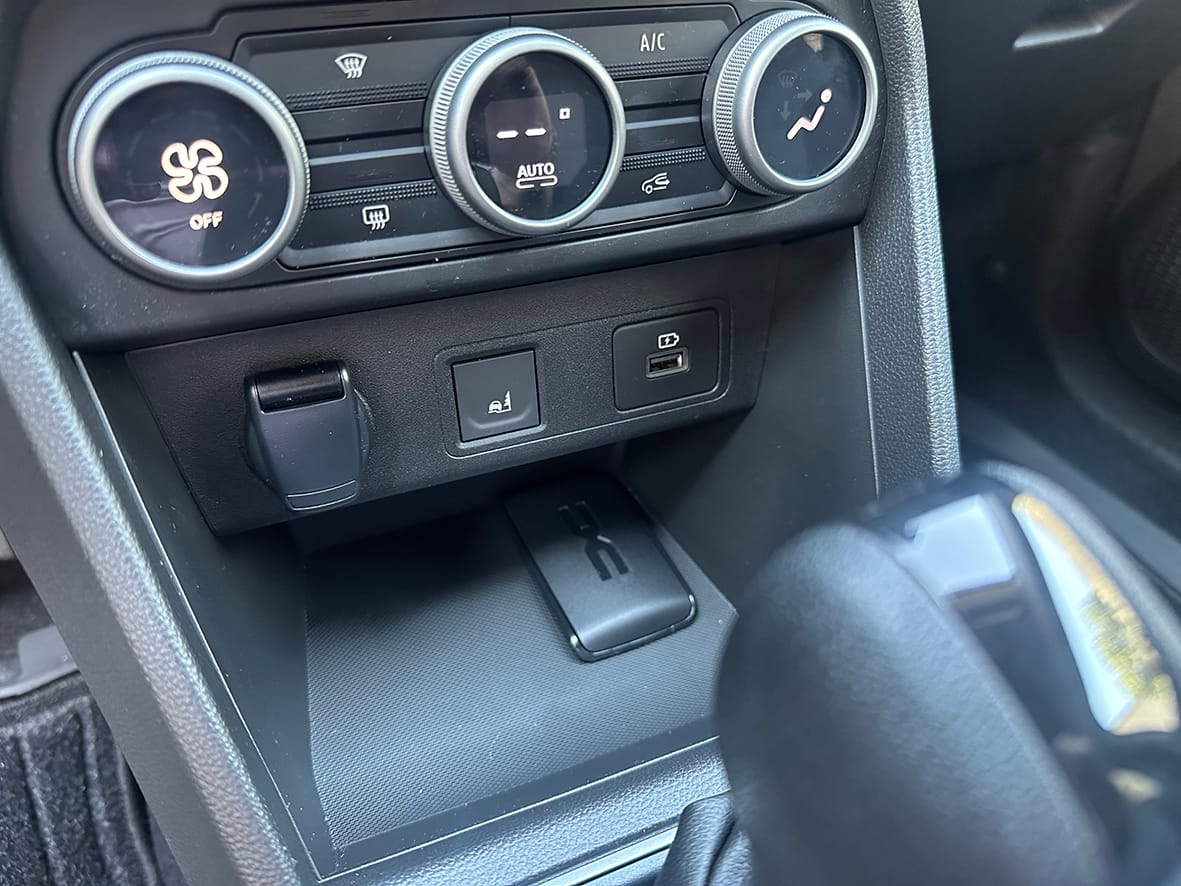 Pel que fa a botons d’accionament clàssic, a més dels del control del clima, tenim els del tancament, el dels quatre intermitents i el botó d’activació del mode Eco. Al volant també tenim alguns comandaments de control. Al costat esquerre hi ha els dels sistemes ADAS i al dret els del sistema multimèdia.