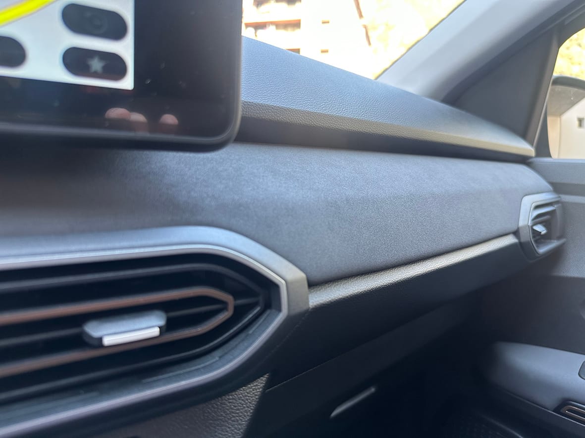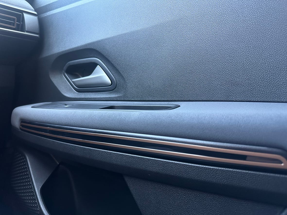 Un altre detall molt visual, encara que en aquest cas, només en termes d’estètica, el tenim en la motllura de tipus teixit que vesteix gran part del quadre de comandaments i dels agafadors de les portes. Combinada amb les altres superfícies rematades a base d’un plàstic més dur, tot dóna una agradable sensació de qualitat.