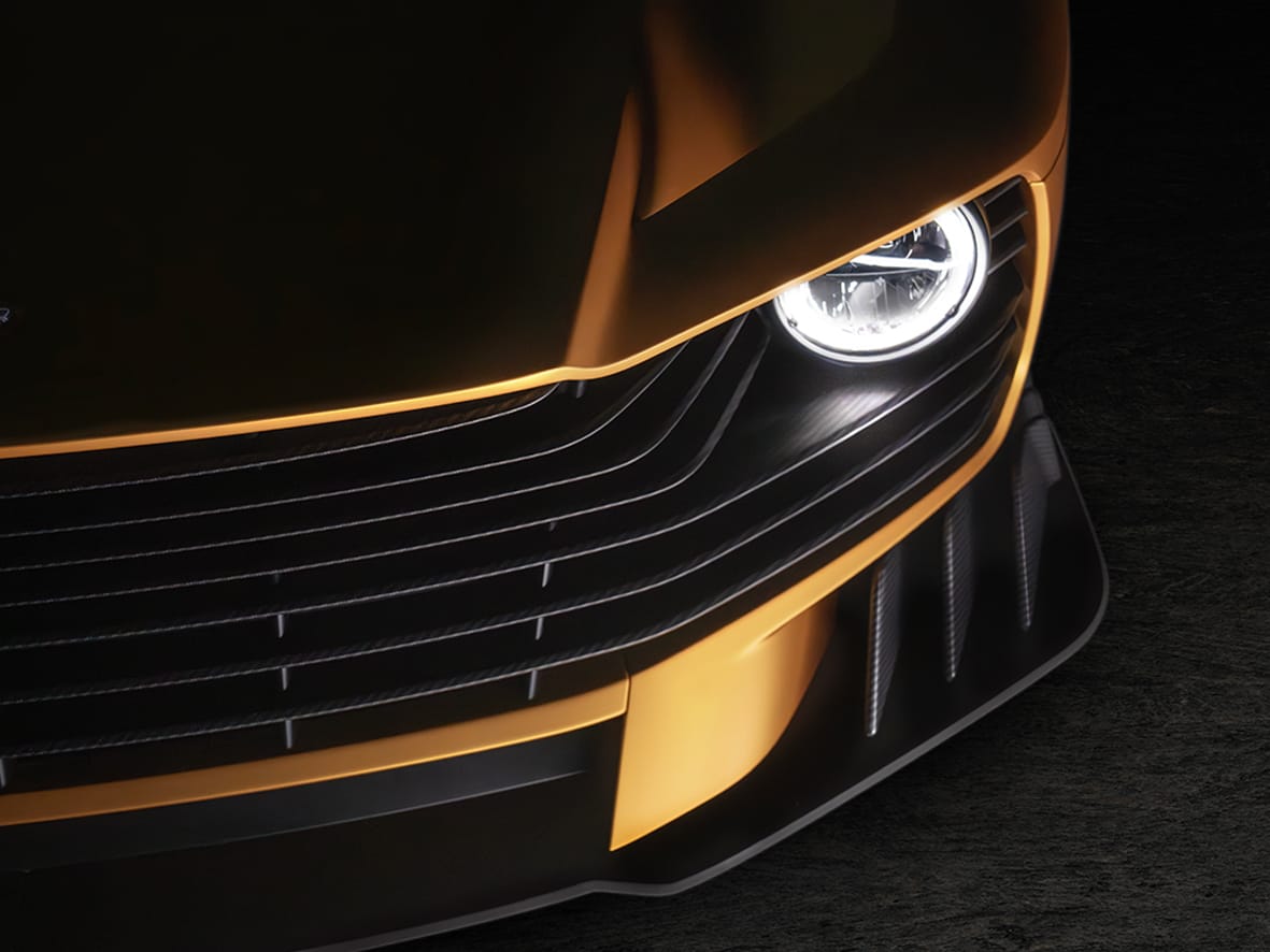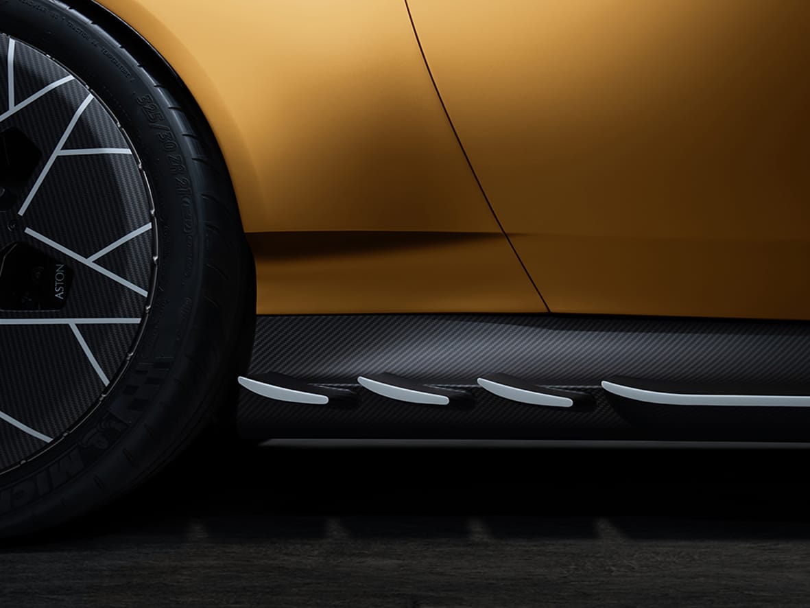 Pel que fa a l’aerodinàmica, s’ha actuat modificant diferents aspectes de la carrosseria de fibra de carboni. És així que a la part davantera destaca un nou splitter més prominent, així com una nova graella redissenyada per afavorir al màxim la refrigeració. Altres elements aerodinàmics diferents són les llandes de 21 polzades inspirades en les de l’Aston Martin RHAM/1, un DBS V8 modificat per a la competició als 80 del segle passat.