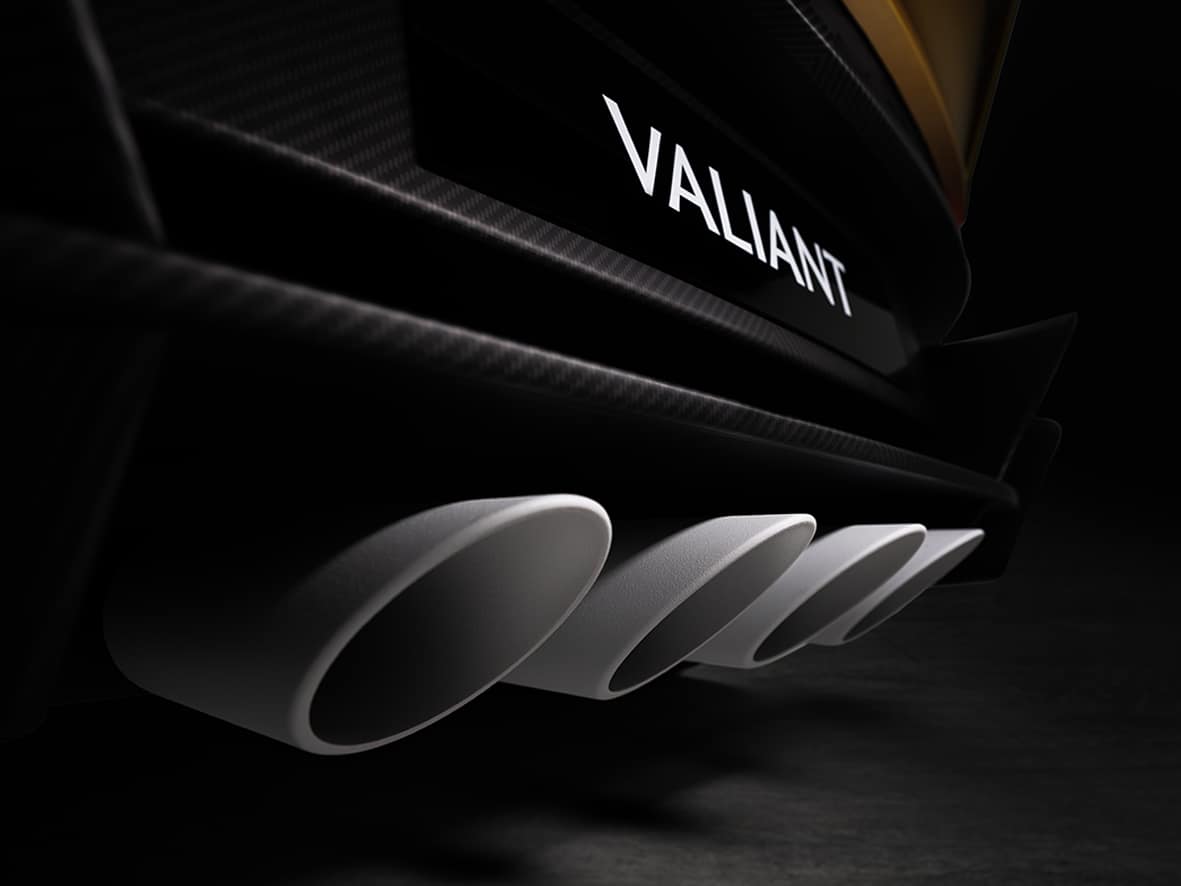 El nou Valiant també incorpora uns faldons laterals que deriven en el difusor posterior, augmentant encara més la càrrega aerodinàmica. Encara en aquest punt de la carrosseria, l’esportiu britànic llueix les quatre sortides de titani del sistema d’escapament.