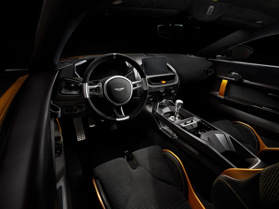 Pel que fa a l’interior, l’Aston Martin Valiant ha rebut el mateix tractament que a la part exterior, destacant l’ús massiu de la fibra de carboni la vista.
