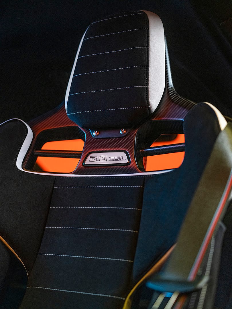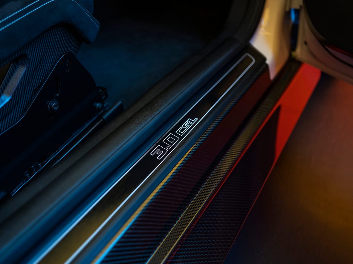 L’habitacle del BMW 3.0 CSL està configurat per a dues places. Com ja he esmentat abans, l’interior inclou molt de carboni, com per exemple els seients M, o el de les diferents motllures.