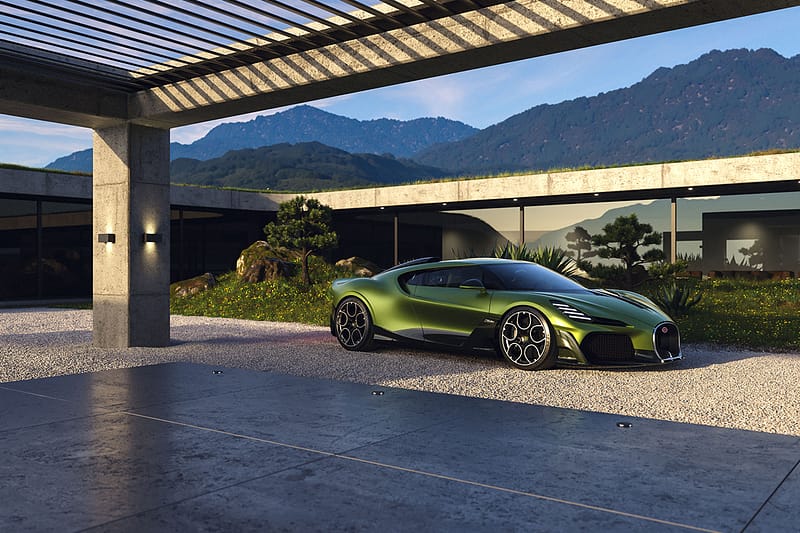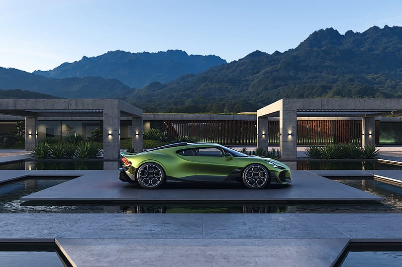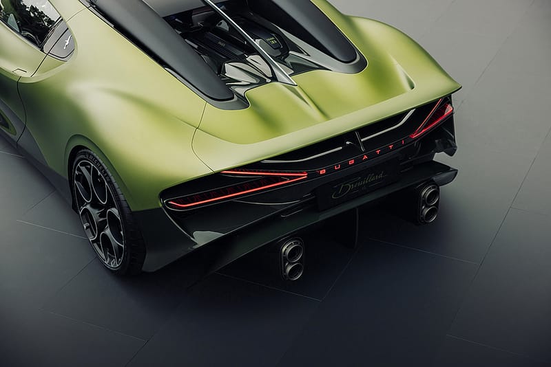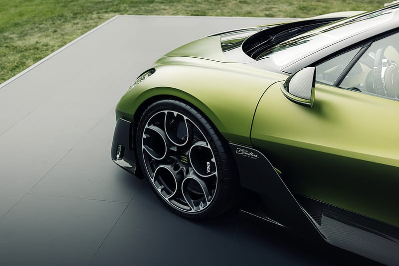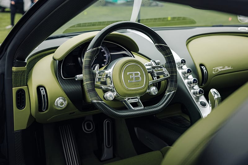 Acabat en un impactant color verd llima combinat amb negre, el model incorpora nombrosos detalls d’inspiració eqüestre, tot honorant al cavall favorit d’Ettore Bugatti, també batejat amb el nom de Brouillard.