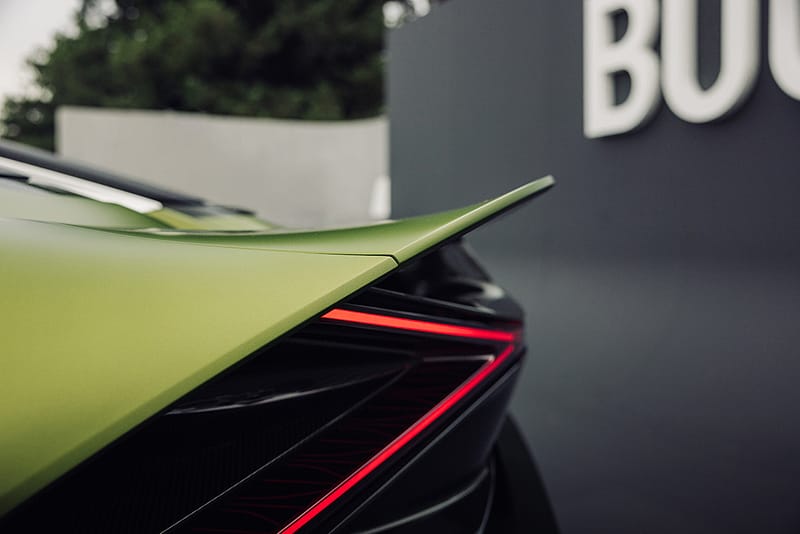 El joc de colors ha estat pensat per transmetre lleugeresa i agilitat. Les entrades d’aire optimitzen la refrigeració del descomunal motor W16, mentre que l’aleró posterior integrat afegeix molta estabilitat a alta velocitat. Al darrere, un difusor ajuda a mantenir el coupé fermament enganxat a l’asfalt, fins i tot si supera els 400 km/h.