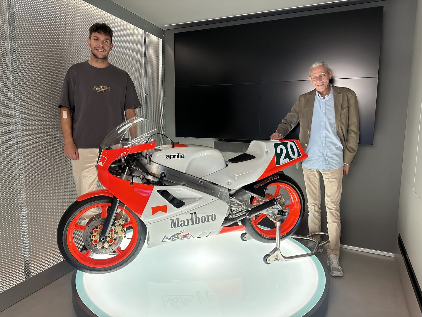 – Ho vaig muntar jo sol. Vaig anar amb la moto de Marlboro. Concretament l’Aprilia que veus en aquesta sala exposada.L’Aprilia amb que Xavier Cardelús va anar al Mundial