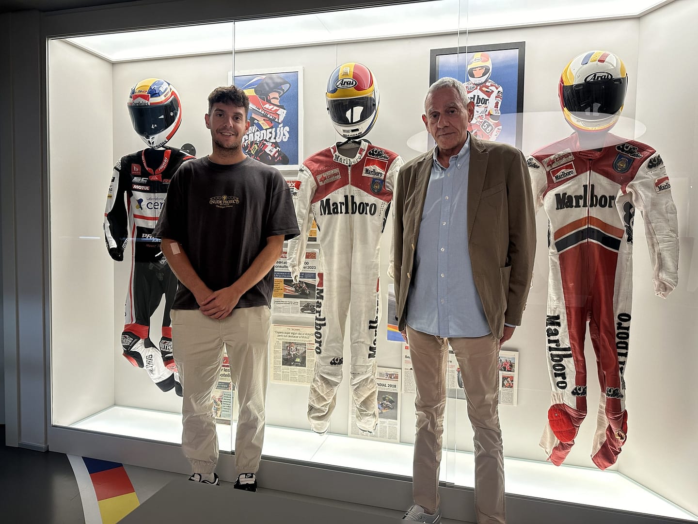 Ho deixem aquí? Perquè la veritat és que podria estar-me un munt d’hores parlant amb vosaltres. A més, encara hem de fer alguna foto i també vull que m’ensenyeu i expliqueu el que hi ha al darrere de les motos i els vestits que teniu exposats a la sala.