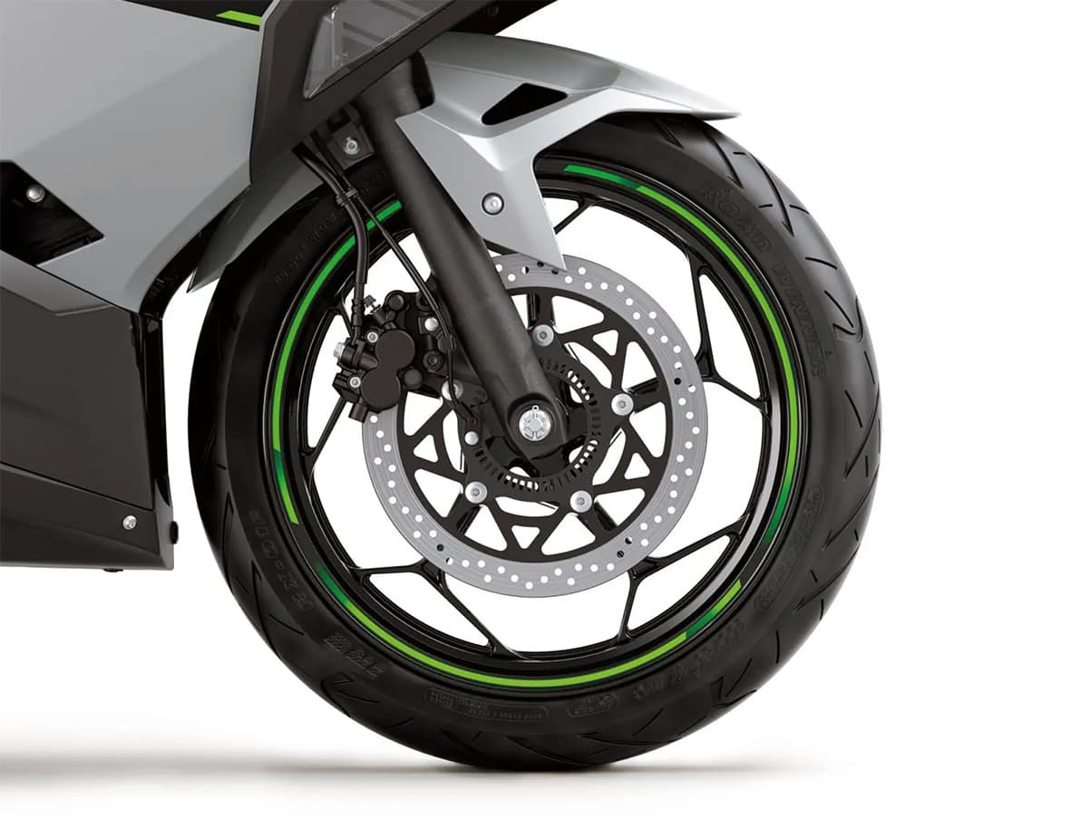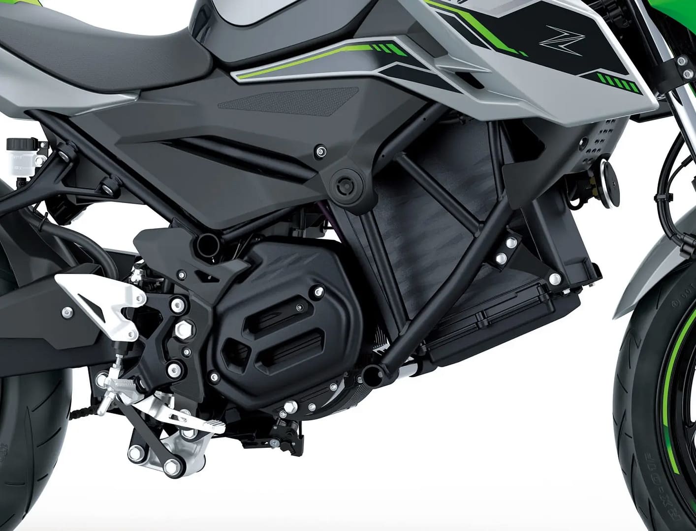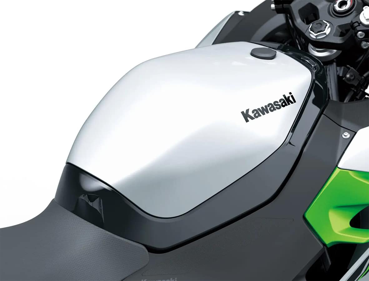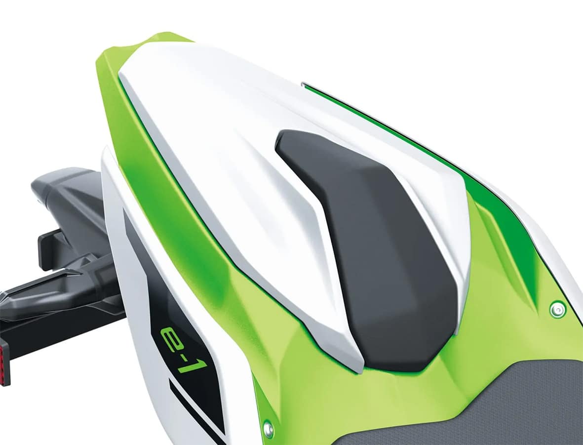 La nova gamma de motos elèctriques dels de Kawasaki llueixen un aspecte exclusiu per diferenciar-les de la resta de modes del catàleg. És així que la seva estètica ha adoptat els colors plata brillant metalitzat i el verd llima mat metalitzat.
