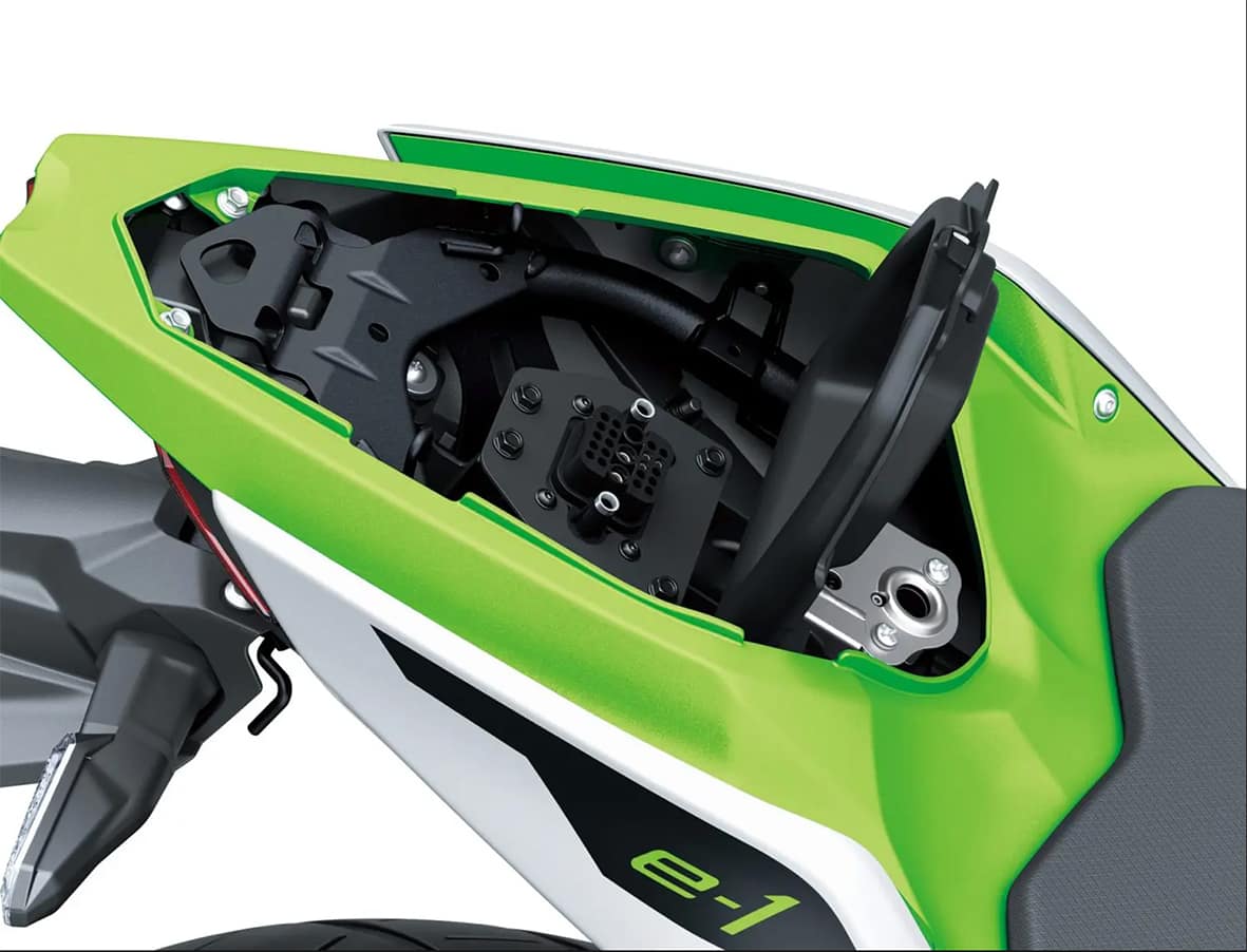 Les avançades bateries d’ions de liti incorporen indicadors de càrrega. A més, el seu disseny simètric facilita molt la seva col·locació. Finalment, la moto inclou una zona d’emmagatzematge just sobre les bateries.