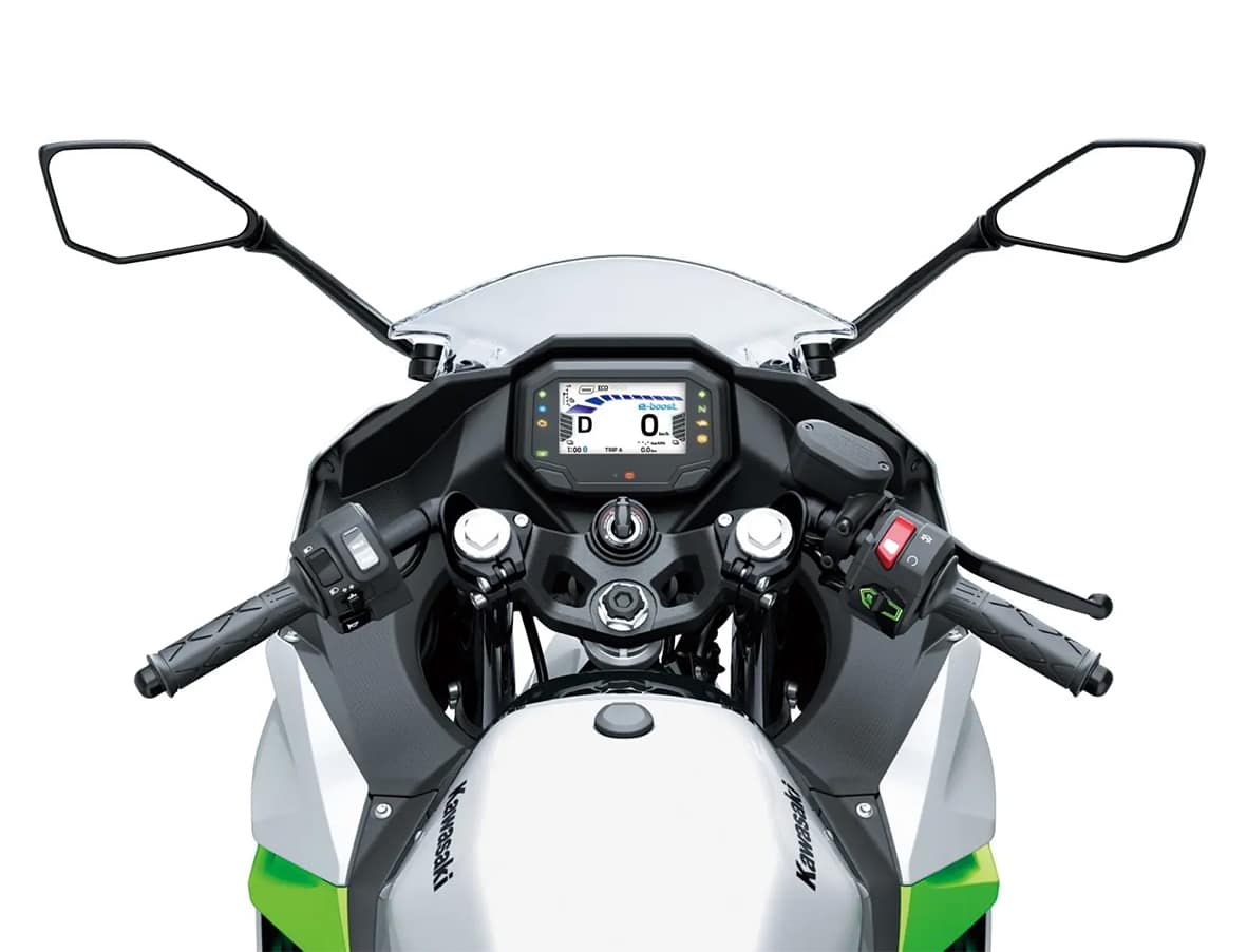 Un cop als comandaments de la moto, destaca la pantalla TFT amb connectivitat per a telèfons intel·ligents. A més de la informació sobre l’estat de la moto, inclou l’estat de la funció e-boost i l’indicador del mode de conducció que hi ha seleccionat. També inclou tota la informació referent a la càrrega de les bateries i a la seva autonomia.
