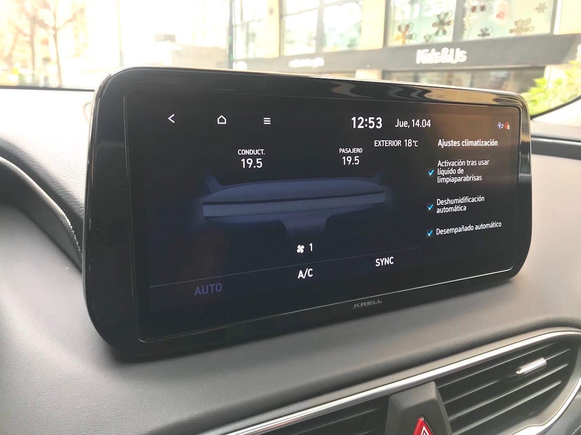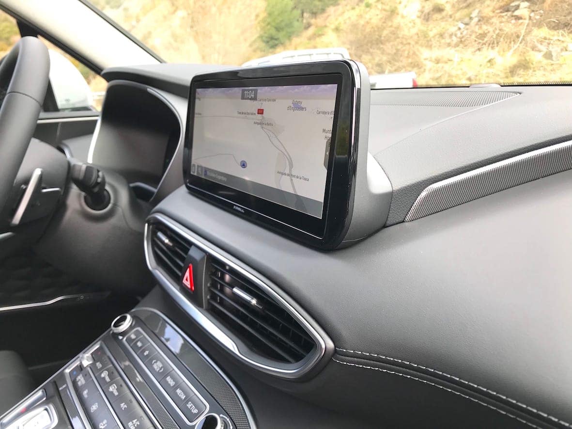 En termes de tecnologies aplicades, el Santa Fe tampoc es queda curt. L’element més destacat el tenim en la pantalla semiflotant de 10,25 polzades (vuit en els acabats més senzills). Es tracta d’una pantalla tàctil molt intuïtiva i fàcil de fer anar.