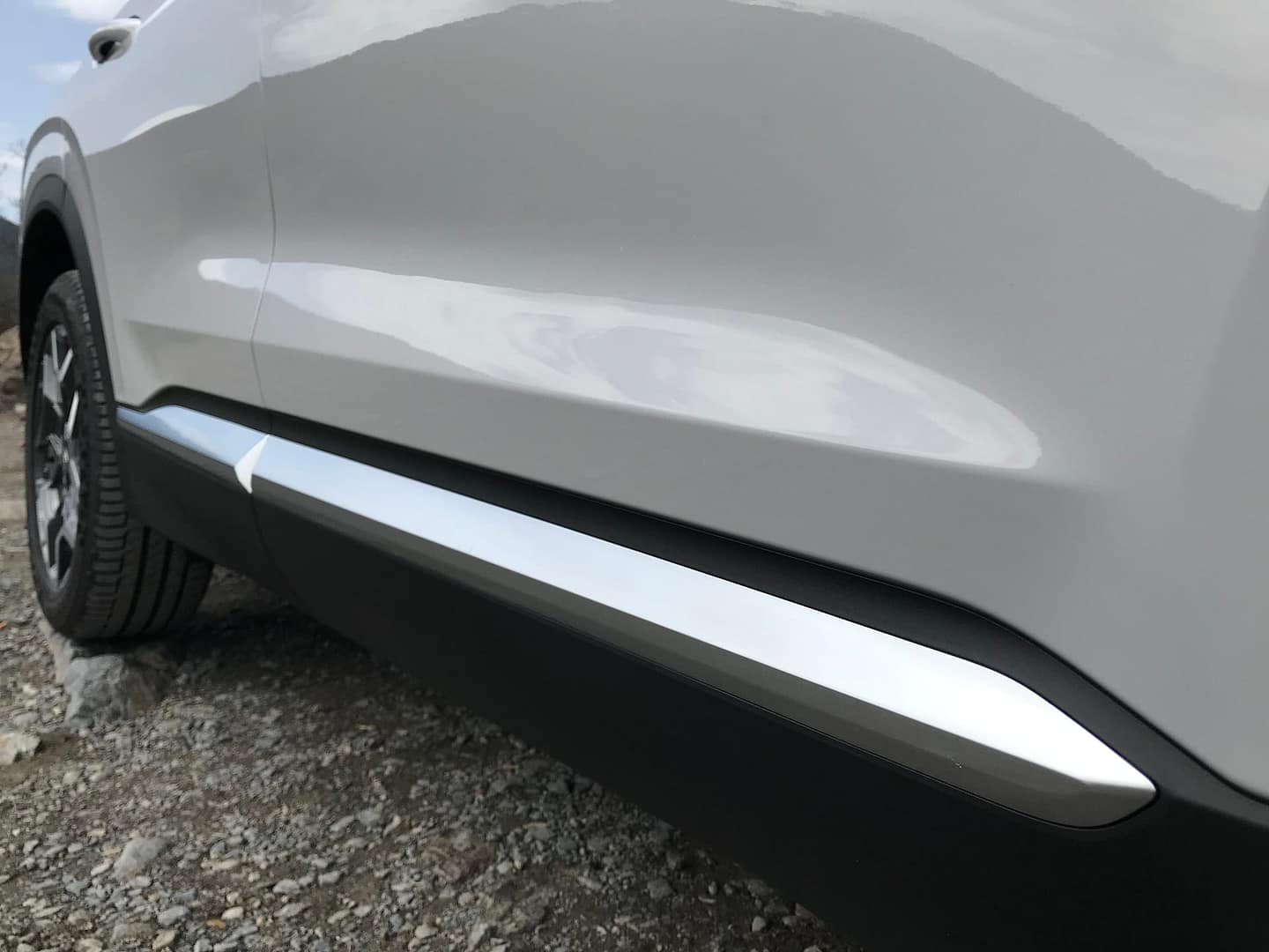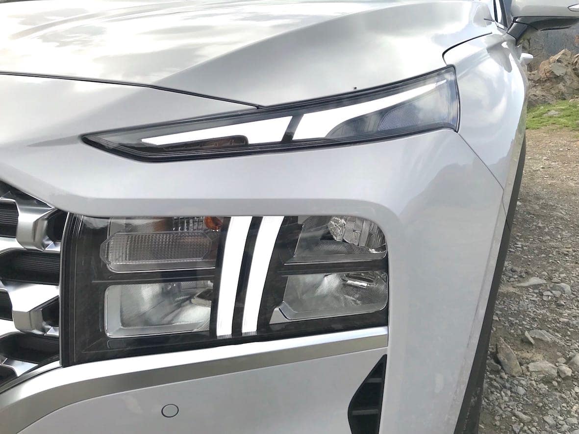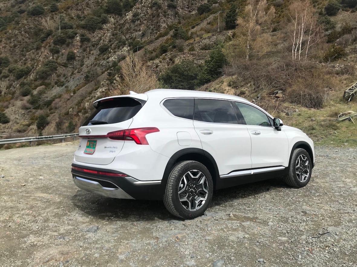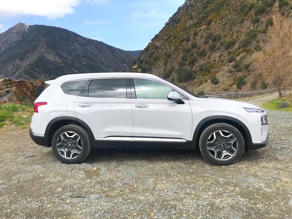 El nou disseny de les llandes (disponibles entre les 17 i les 20 polzades) amb els prominents passos de roda del mateix color que la carrosseria, o l’encaix visual del cotxe encabit entre les barres del sostre i les del faldó inferior de sota les portes, fan que aquesta quarta generació Santa Fe llueixi molt al llarg dels seus quasi 4,8 metres de llargada.
