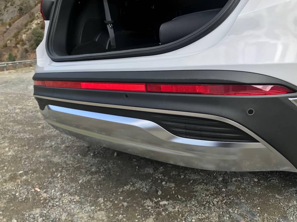 Des del darrere, els pilots posteriors estan units per una fina tira que recorre tot l’ample del cotxe, un recurs molt utilitzat per la mayoria de fabricants. El para-xocs està rematat per dos elements: en primer lloc per una segona tira reflectora vermella que va de banda a banda del vehicle. En segon lloc, per la clàssica placa protectora tipus off road que com en el cas de la part frontal, emergeix des dels baixos rematant amb molt d’encert el caràcter 4×4 del cotxe. Tot plegat dóna al quart posterior del SUV coreà un estil més modern i dinàmic.