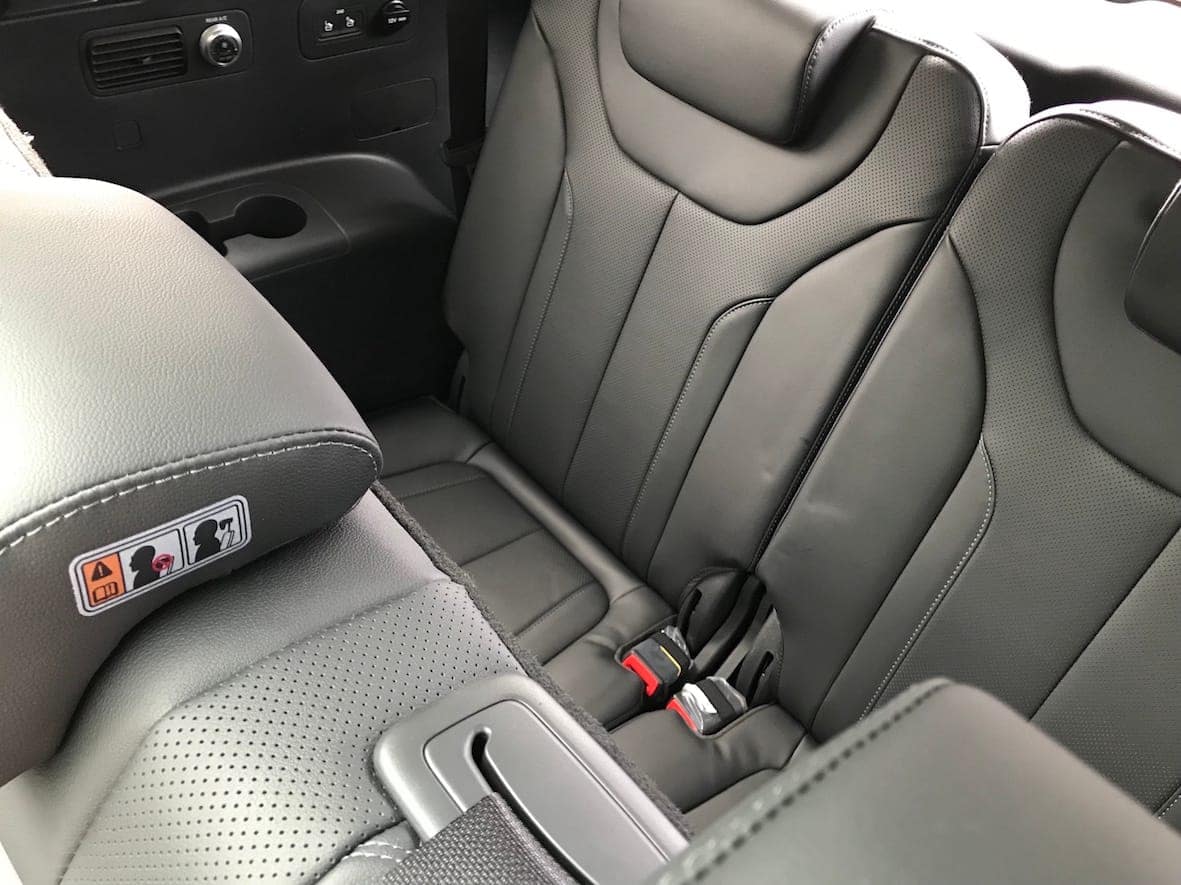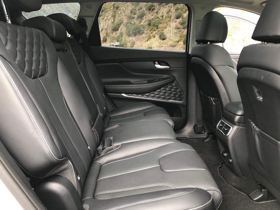Ja en l’interior, trobem un habitacle de 7 places, de fet és un 5 + 2, ja que les dues places opcionals de la tercera filera -molt fàcils de posar o treure- van plegades a la base del maleter. Donat l’espai que ofereixen, aquestes dues places estan dissenyades per a nens o persones de baixa alçada. Encara que siguin dues places auxiliars, inclouen la mateixa qualitat a nivell de tapisseria, recolzacaps, tenen el seu propi control de la climatització i un espai per posar les begudes. Lògicament, quan estan instal·lades es redueix la capacitat del maleter uns 130 litres.