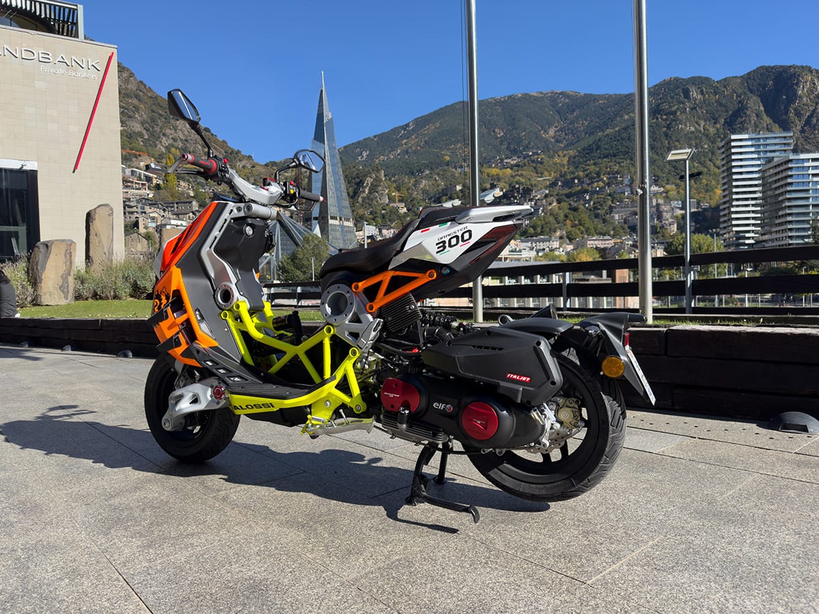 El model que vam poder provar de la mà del distribuïdor Italjet d’Andorra va ser el Dragster 300 Malossi, un escúter -jo diria fins i tot maxiscooter- que reflecteix impecablement l’essència de la competició i la de la Malossi Racing Academy, una copa monomarca italiana que ja porta cinc edicions.