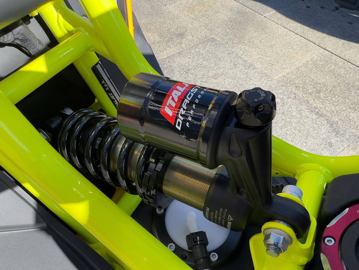 Des del lloc de conducció gairebé no es veu la roda davantera ja que va col·locada molt avançada. Això sí, la suspensió no perdona, és dura, seca i dóna zero concessions al confort. Però bé, això és part del joc!