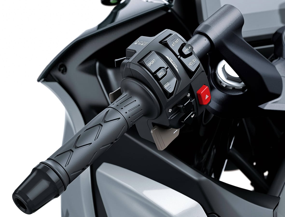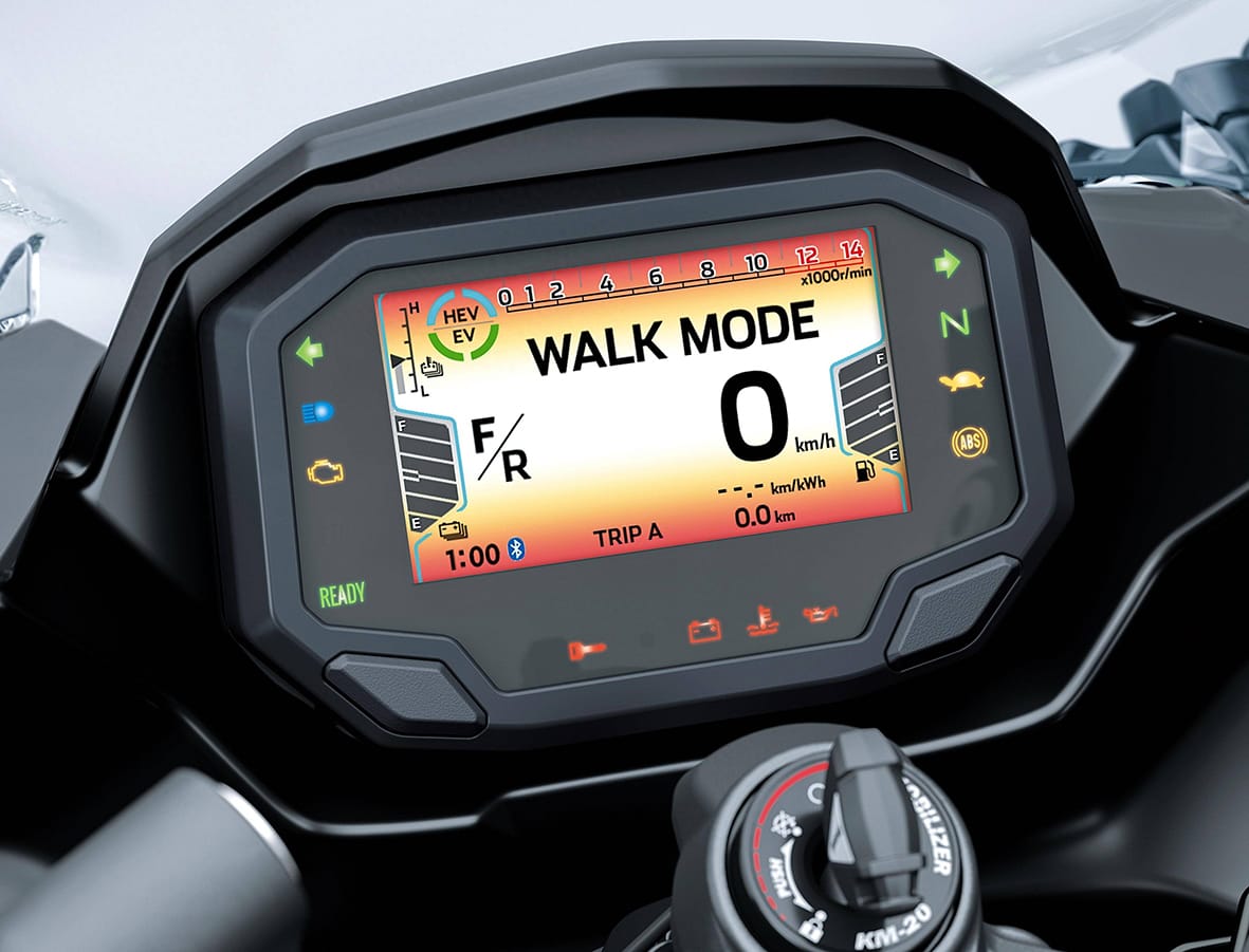 Hi ha un mode més anomenat ‘Walk’ (caminar). Aquest mode permet moure la moto a velocitats molt baixes, bàsicament per poder fer maniobres en espais reduïts. En això també col·laborarà molt el fet que la moto disposi de marxa enrere.