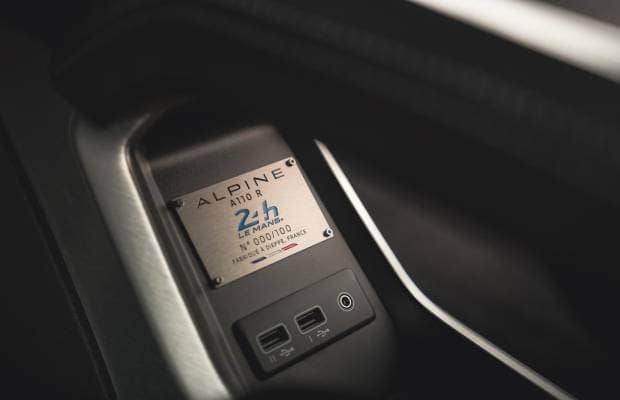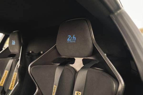 Com en el cas del Turini, la fibra de carboni és una de les claus perquè l’Alpine A110 R Le Mans aconsegueixi reduir al màxim el seu pes. I és que assolir els 1082 kg de pes total, aquest material està present al sostre, a l’aleró, a les llandes i als seients tius bucket monocasc signats per Sabelt Track, així com a diferents parts de l’interior.