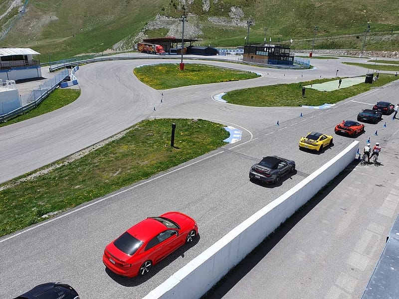 Cap a les 11.45 hores la comitiva va sortir cap al Circuit Andorra – Pas de la Casa, on a partir de les 13.00 van fer-se les rondes al circuit en els supercotxes, el moment més esperat pels infants, tot i que la pujada fins al circuit ja va suposar-los una gran experiència també. L’acte va continuar amb un dinar al mateix circuit.