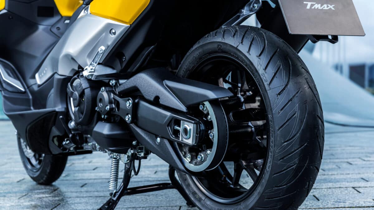 Els pneumàtics originals que equipa la nova TMAX, uns Bridgestone SC2, contribueixen a l’hora d’esprémer la moto gràcies a les seves excel·lents prestacions en tot tipus de clima, la qual cosa, indubtablement -més enllà de l’adherència- col·labora molt a l’hora de valorar aspectes com el rendiment i l’estabilitat.