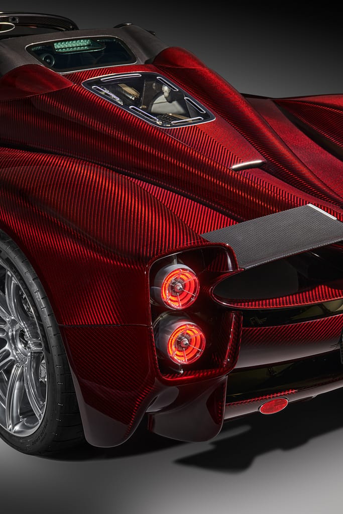 La carrosseria del Pagani Utopia està esculpida íntegrament amb fibra de carboni d’alta resistència. D’extrem a extrem el seu perfil dibuixa línies fluides i elegants que evoquen estil, bellesa, fluïdesa, radicalitat i dinamisme pels quatre costats, fins i tot quan el cotxe està aturat. Però és que el seu disseny no només és impressionant estèticament, també és absolutament i premeditadament funcional.