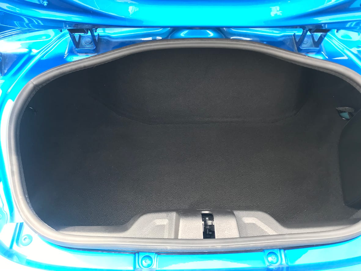 Respecte a l’espai per emmagatzematge, poca cosa podem dir. En tot cas, també és cert que estem davant d’un cotxe que no ha estat projectat per viatjar precisament en família. Diem això perquè entre els dos maleters, el del davant i el del darrere, tot just s’arriba als 200 litres. El davanter té una capacitat d’uns 100 litres, mentre que el del darrere fa 96 litres més. Què voleu, tot no pot ser!