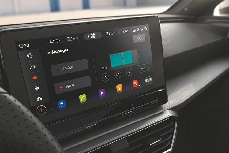 La quarta generació del compacte més exitós de SEAT es presenta també com la primera generació de models totalment connectats de la companyia i més especialment si ens fixem en la versió «e-Hybrid». Diem això perquè des de l’aplicació «SEAT Connect», a més de disposar de les funcions habituals, també es poden controlar des del telèfon intel·ligent aspectes com ara la càrrega de la bateria, l’estat d’aquesta, i/o activar algunes funcions a distància, com per exemple la climatització.