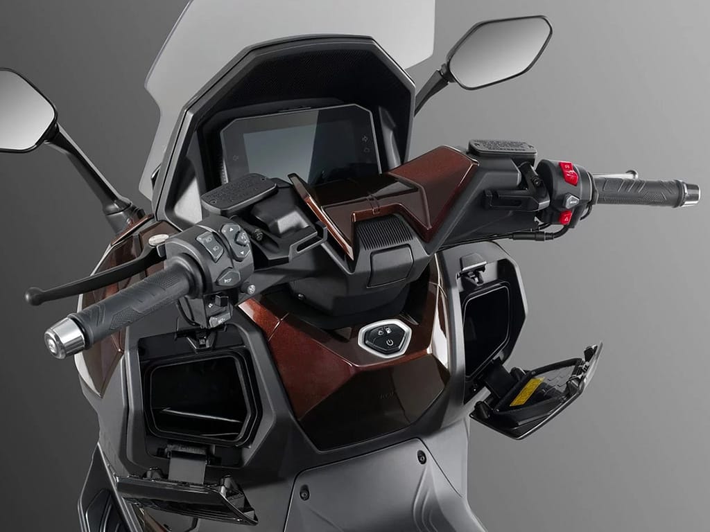 Imponent, bonic, ple de detalls en termes de disseny, però sobretot amb evidents aptituds per afrontar viatges llargs còmodament, aquest model competirà amb maxiéscuters de marques amb molt de pedigrí, com ara la renovada Honda Forza 750 2025.