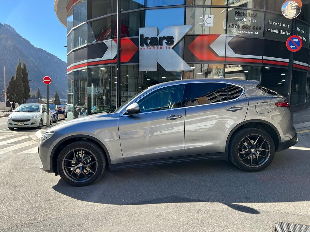 Alfa Romeo Stelvio Speciale 2.0 280 CV AT8 Q4 – 12 mesos de garantia – Transmissió automàtica amb tracció total – Fars bixenon adaptatius (AFS) – Cambra d’aparcament del darrere – Sensor de pàrquing davanter i del darrere – Volant de cuir amb multifunció, calefactat i paletes de canvi – Cockpit digital – Climatitzador automàtic – Seients davanters esportius amb ajust elèctric, memòria, soprte lumbar i calefactats – Sensor de pluja i llums automàtic – Retrovisors exteriors abatibles, amb ajust elèctric i calefactats – Pinces de fre pintades en color negre – Enganxall de refre – Sistema de navegació GPS amb pantalla tàctil – Disponible a la nostra exposició