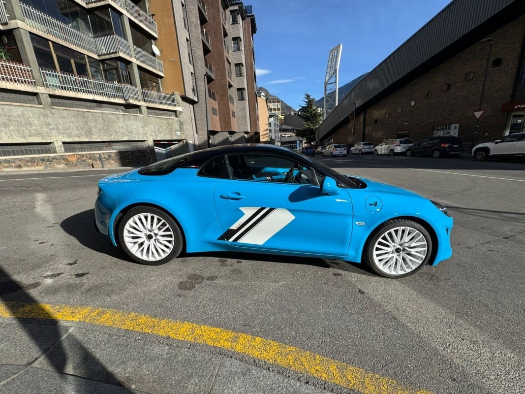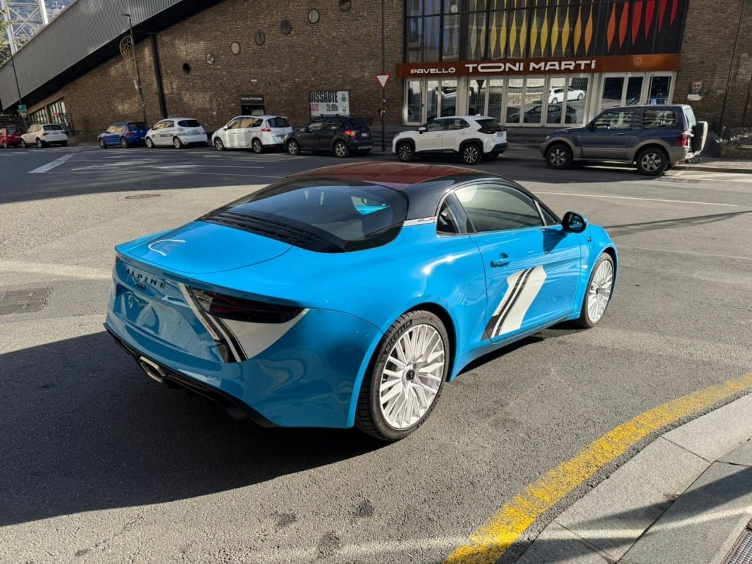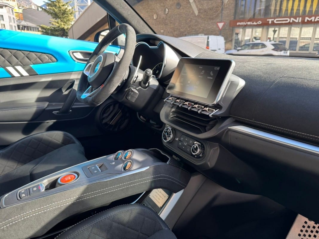 Motor 1.8 Turbo 300cv – Color exclusiu Caddy Blue – Homenatge 50 Aniversari victòria Ral·li San Remo 1973 – Llandes d’aliatge de 18 polzades Grand Prix en color Blanc Brillant – Chasis Sport amb posada a punt específica – Seients bucket Sabelt Racing alleugerits en microfibra amb brodats específics – Sostre de carboni amb acabat en color Vermell – Sistema d’escapament esportiu actiu commutable – Frens d’alt rendiment Brembo amb pinces en color Negre – Interior amb motllures de carboni mat – Sistema d’infoentreteniment amb replicació de smartphone (Apple CarPlay i Android Auto) – Sensors d’aparcament davanters i posteriors amb càmera de visió posterior – Faros Full LED amb signatura lluminosa específica – Retrovisors plegables elèctricament – Control de creuer i limitador de velocitat – Alpine Telemetrics per al control de paràmetres en temps real – Disponible a la nostra exposició – 12 mesos de garantia.