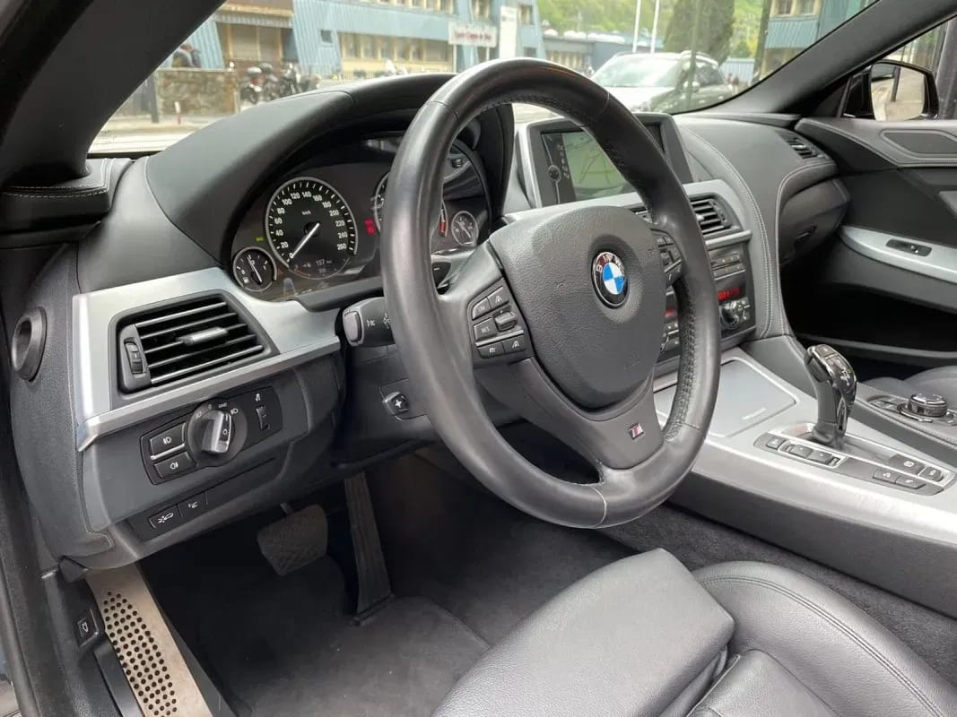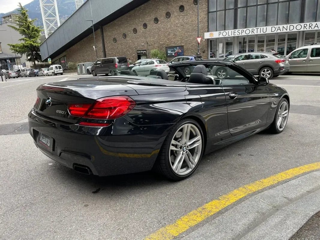 BMW 650i M xDrive Cabrio 408cv – Tracció total xDrive – Color Black Sapphire Metallic – Paquet esportiu M – Paquet aerodinàmic M – Paquet d’òptica negra – Llandes d’aliatge de 20″ M (373M) – Seients esportius de cuir Dakota Negre amb suport lumbar i calefacció – Tauler de fons revestit de cuir – Acabats interiors en alumini polit i aplicacions ceràmiques als comandaments – Seients esportius M entapissats el cuir Dakota amb regulació elèctrica, memòria, suport lumbar i calefactats – Capota de lona negra – Deflector de vent – Suspensió adaptativa i Drive Dinàmic – Canvi automàtic esportiu amb leves – Sistema de navegació Professional – Head-Up Display – Sistema de navegació professional – Sistema de so Hi-Fi Professional – Càmera de visió posterior i Control de distància d’aparcament (PDC) – Paquet retrovisors interior i exteriors – Control de creuer actiu amb funció Stop&Go – Accés confort i tancament automàtic – Fars antiboira LED i llum ambiental – Interfície USB/Àudio i connexió per a Smartphone – BMW TeleServices i control per veu – Protecció activa de vianants – Accionament automàtic de llums de creuament – Columna de direcció amb ajustament elèctric – Doble joc de llantes i pneumàtics hivern i estiu – Disponible a la nostra exposició – 12 mesos de garantia –