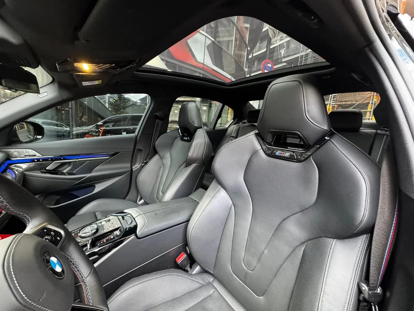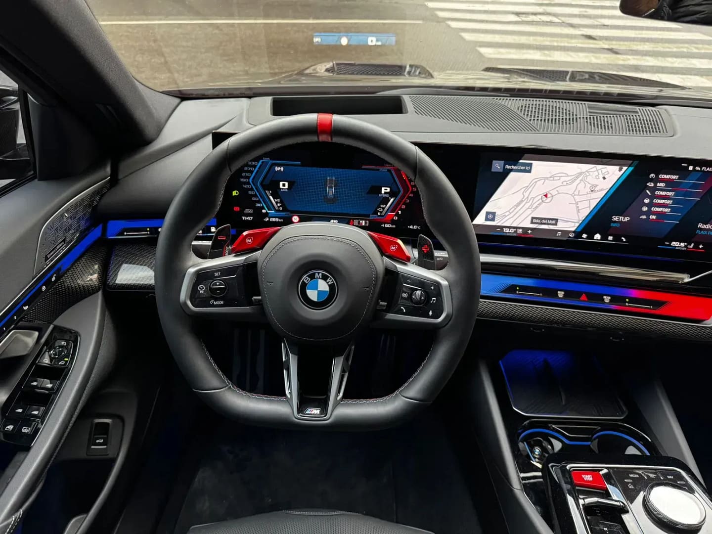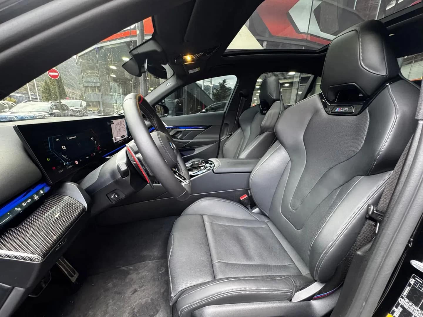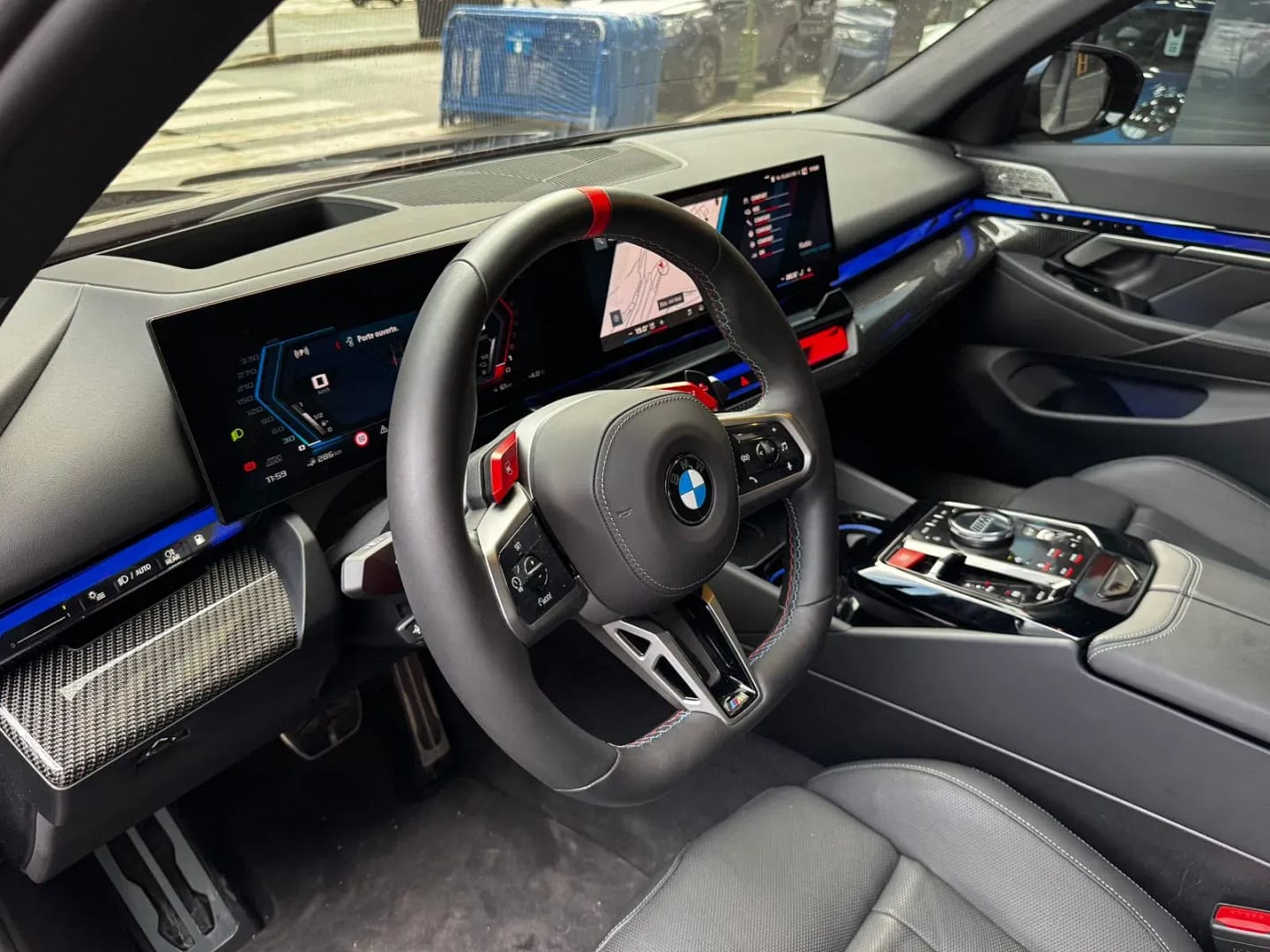 BMW M5 Berlina 727CV (535kW) xDrive híbrid endollable – Paquet M Drive Professional – Paquet M Driver’s Package (velocitat màxima 305 km/h) – Paquet Comfort – Paquet ConnectedDrive Services amb ConnectedPackage Professional, Teleservices i trucada d’emergència legal – BMW Live Cockpit Professional – Sistema de so Bowers & Wilkins Surround – Safata de càrrega inalàmbrica i eSIM personal 5G – Ràdio digital DAB – Sistema d’alarma antirobatori i Accés confort sense clau – Fars BMW Individual Shadowline amb fars LED adaptatius – Línia exterior BMW Individual Shadowline amb elements ampliats – Llandes M de 20/21 estil 951M en negre, actualment equipat adicionalment amb llantes Bossen de 22 i 23 – Indicador de pressió de pneumàtics amb kit de reparació – Paquet exterior full carboni amb capó complet, paracops davanter, difusor del darrere, taloneres, aleró i carcasses de retrovisors – Escapament M Performance conmutable amb preparació valorada en uns 18.000 € – Sostre panoràmic de vidre automàtic – Cortinetes solars laterals i vidres amb protecció solar – Climatitzador automàtic de 4 zones – Seients davanters multifunció M amb ajust elèctric i memòria, ventilació activa i calefacció davant i darrere – Cinturons de seguretat M – Il·luminació ambiental interior i sostre interior Individual en antracita – Sistema Travel & Comfort i càmera interior – Assistents de conducció Driving Assistant, Active Guard i preparació Driving Assistant Plus – Parking Assistant Plus – Tracció total xDrive amb canvi automàtic i sistema híbrid endollable amb motor V8 4.4 biturbo i motor elèctric, potència combinada 727CV (535kW), bateria al voltant de 22 kWh i autonomia elèctrica WLTP pròxima als 70 km – Versió Europa, fabricat a Dingolfing (Alemanya), color exterior Black Sapphire Metallic i tapisseria en cuir “merino” negre – Garantia oficial – Disponible a la nostra exposició –
