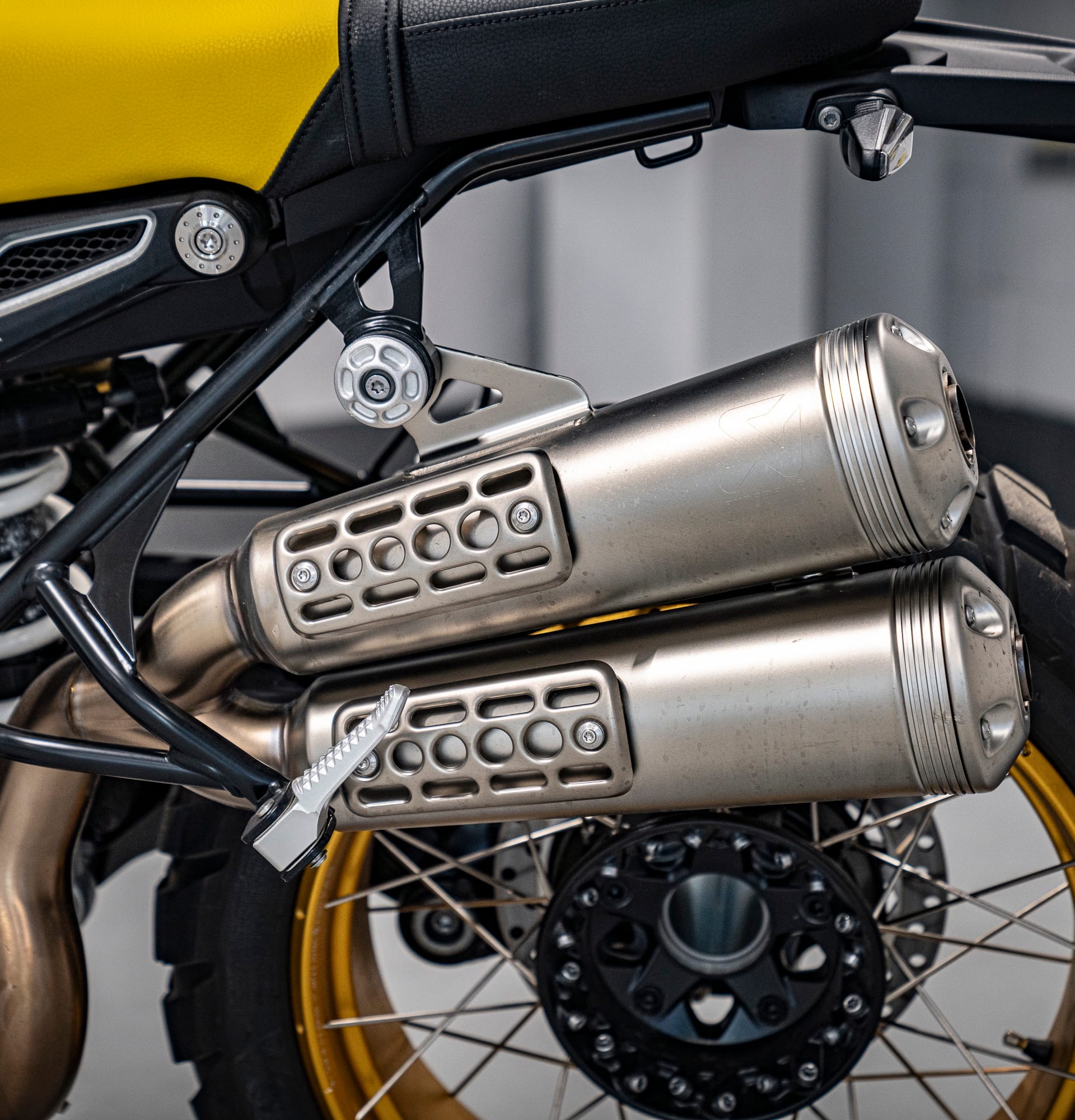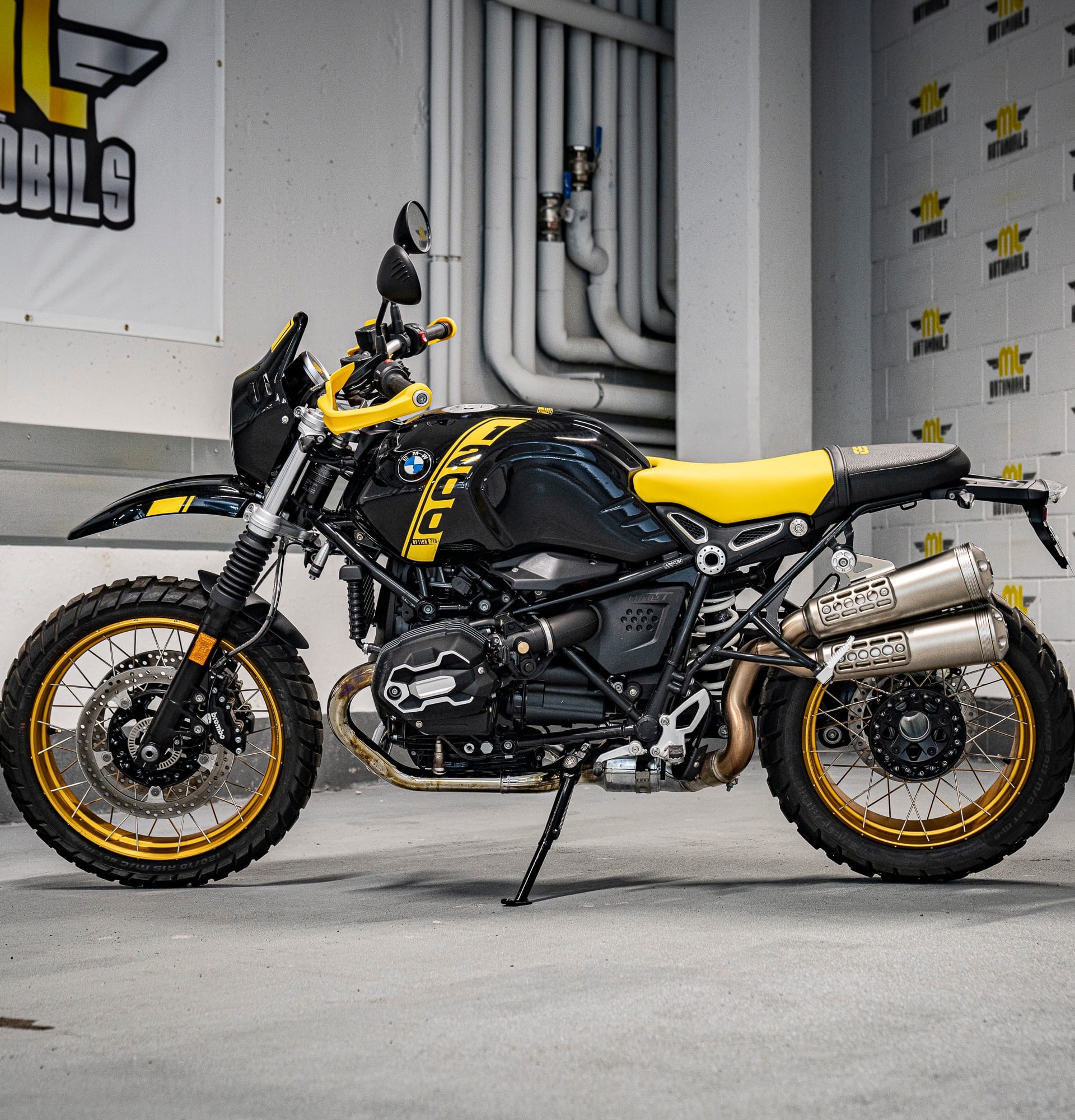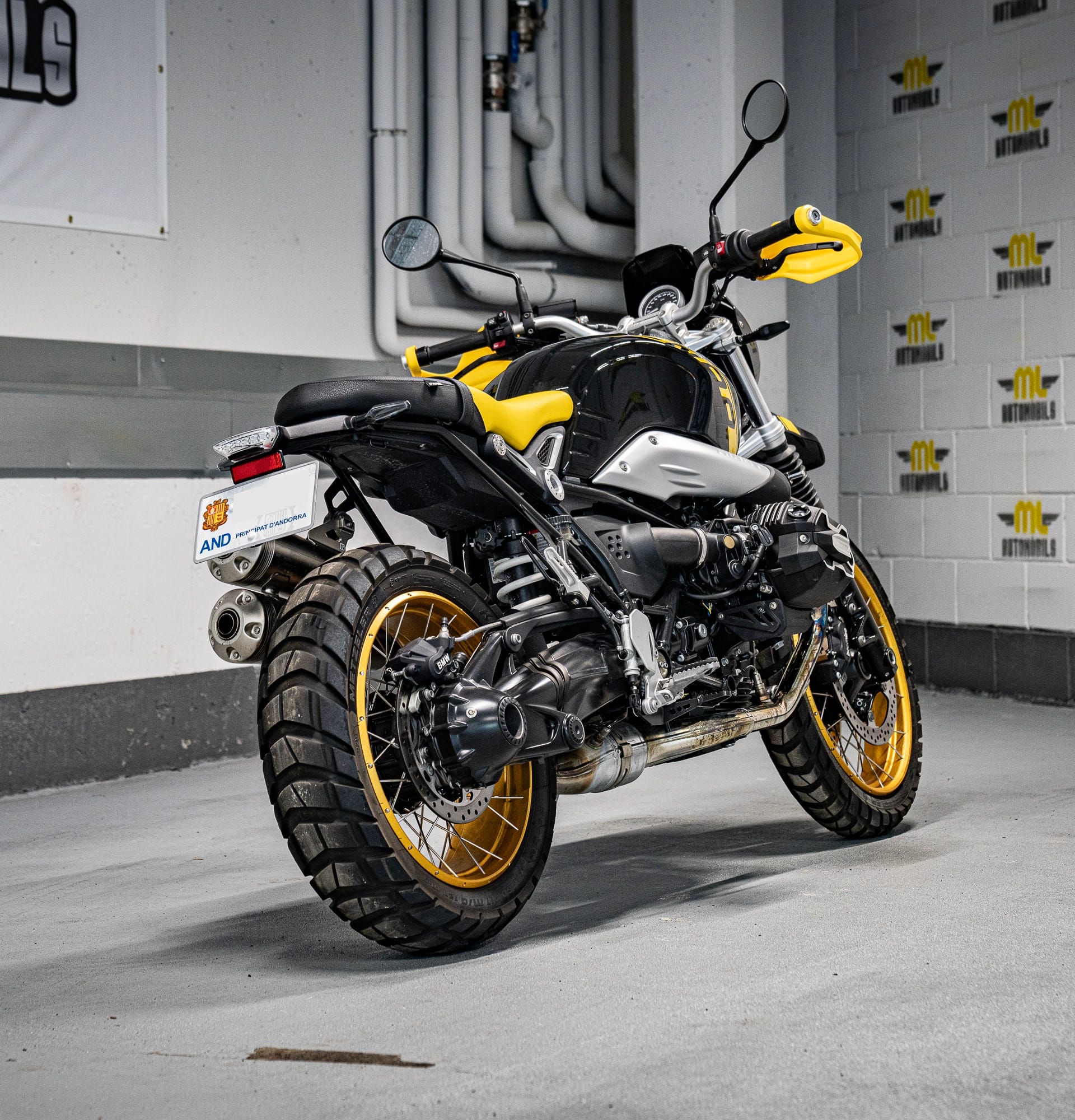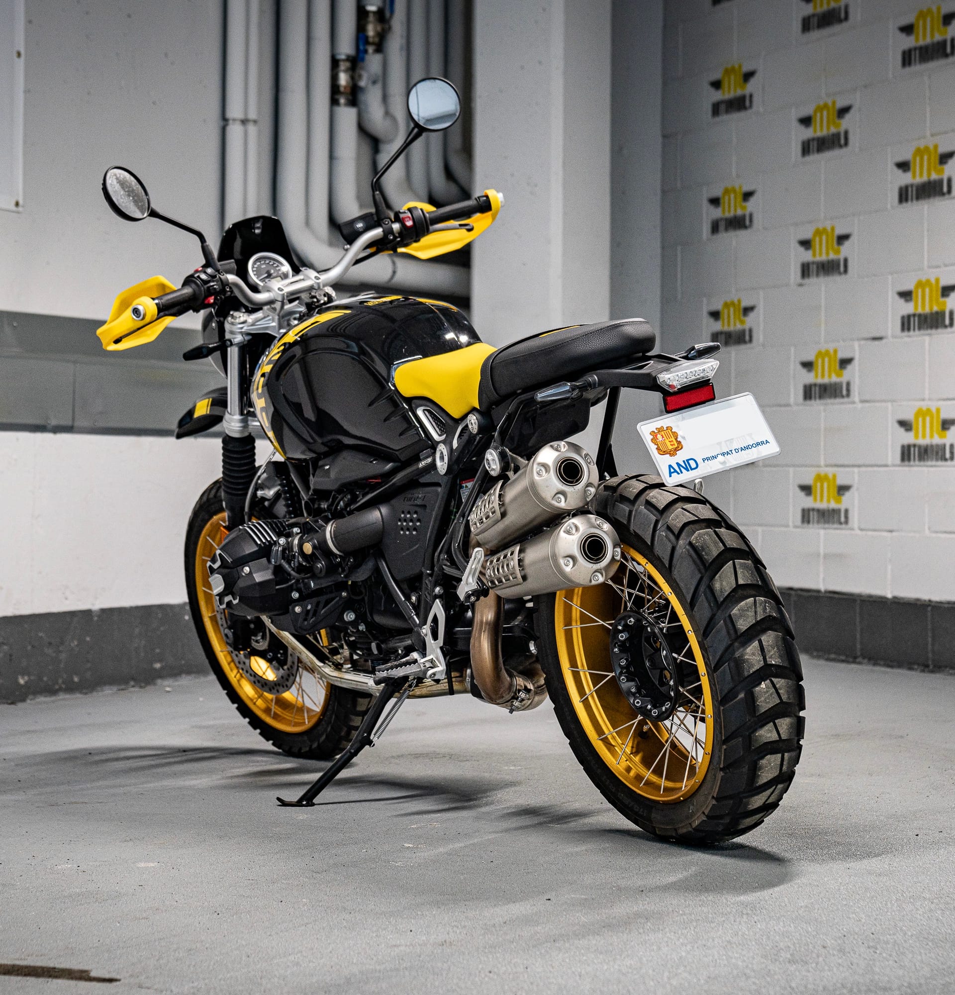 Moto única i legendaria, la “Edició 40 anys GS” de BMW Motorrad. Amb un disseny negre i groc que rendeix homenatge a les primeres enduro de viatge de la marca, aquesta R nineT Urban G/S captiva amb la seva aparença destacada. Les tapes del culat fresades de l’Opció 719 i el protector de mans grocs mostren la passió pels detalls. Els pneumàtics per a tot terreny i el sistema d’escapament Scrambler elevat complementen perfectament el seu aspecte. Una moto amb una història de 40 anys d’aventures per tot el món, capaç de conquerir qualsevol terreny i carretera amb valentia i força. No t’oblidis de l’inconfusible disseny inspirat en la llegendaria “Bumblebee”. Descobreix l’èxit i la passió que s’amaga darrera de la R nineT Urban G/S “Edició 40 anys GS”.