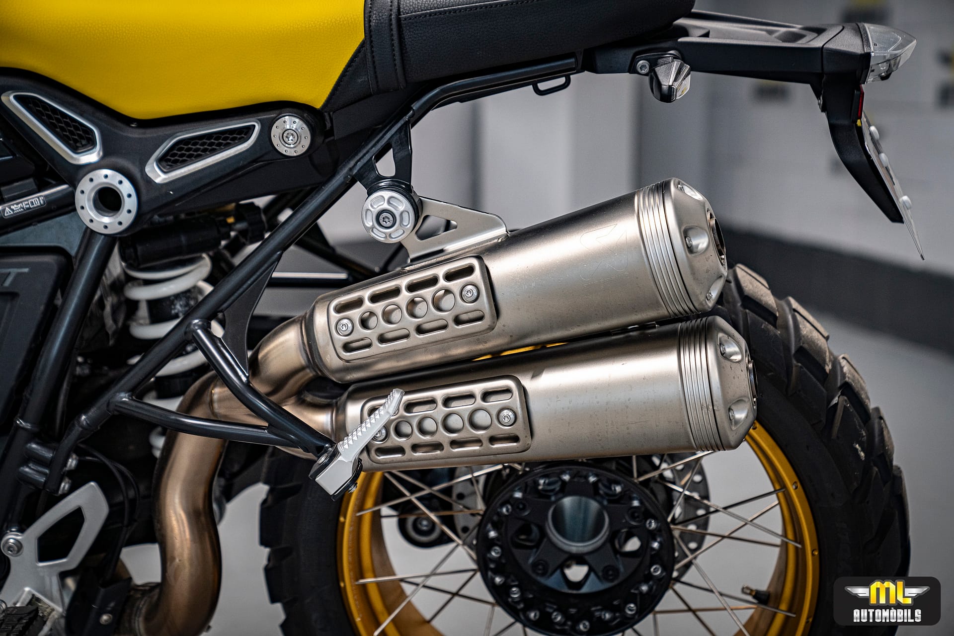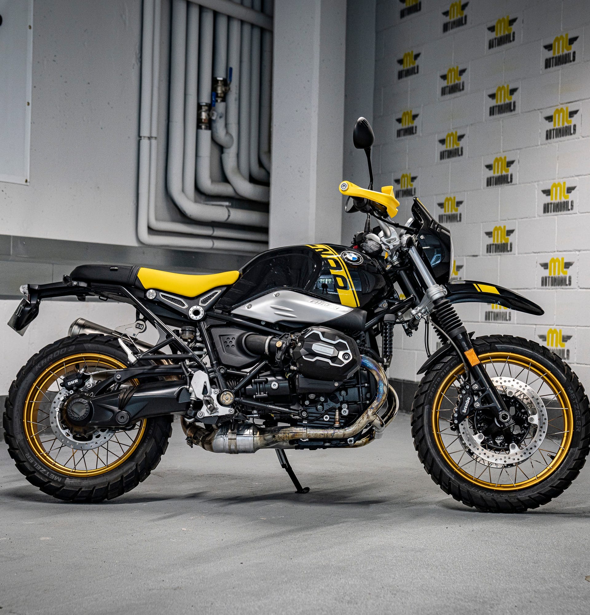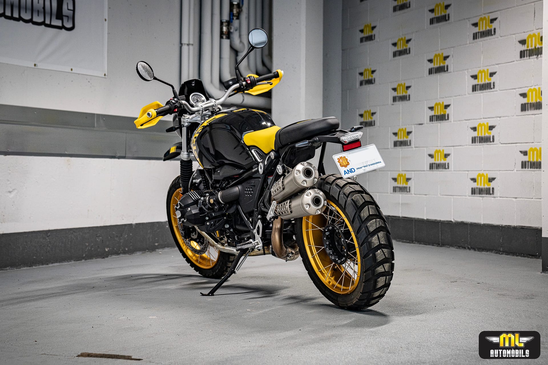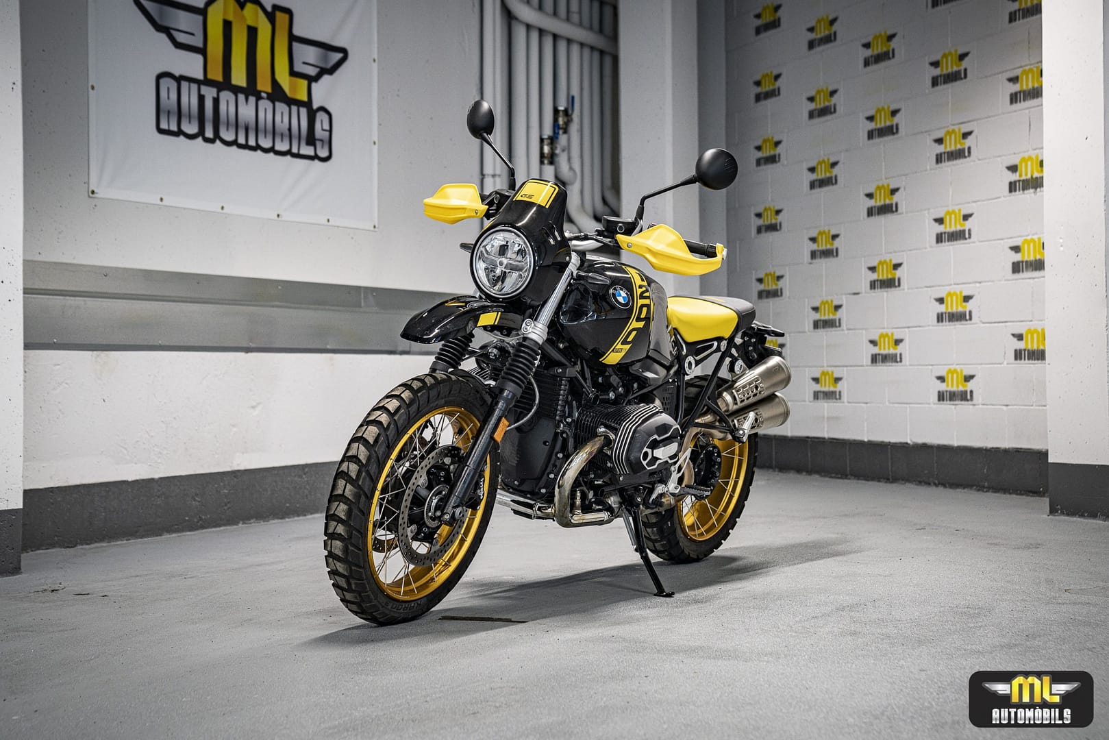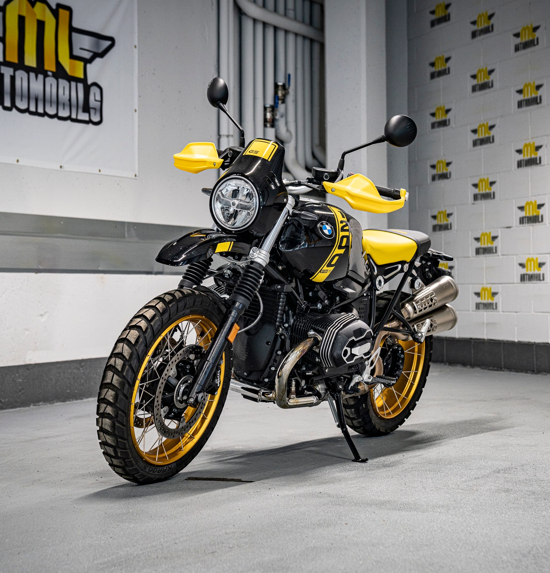 Moto única i legendaria, la “Edició 40 anys GS” de BMW Motorrad. Amb un disseny negre i groc que rendeix homenatge a les primeres enduro de viatge de la marca, aquesta R nineT Urban G/S captiva amb la seva aparença destacada. Les tapes del culat fresades de l’Opció 719 i el protector de mans grocs mostren la passió pels detalls. Els pneumàtics per a tot terreny i el sistema d’escapament Scrambler elevat complementen perfectament el seu aspecte. Una moto amb una història de 40 anys d’aventures per tot el món, capaç de conquerir qualsevol terreny i carretera amb valentia i força. No t’oblidis de l’inconfusible disseny inspirat en la llegendaria “Bumblebee”. Descobreix l’èxit i la passió que s’amaga darrera de la R nineT Urban G/S “Edició 40 anys GS”.