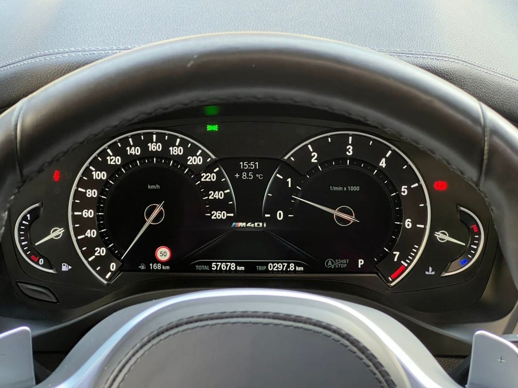 Aquest unitat inclou: Paquet aerodinàmic M – Sostre panoràmic de vidre – Llandes M de 20 polzades – Paquet confort – Paquet d’innovació – Shadow line – Sostre panoràmic – Suspensió esportiva M – Sistema d’accés confort – Volant de cuir M amb multifunció i lleves de canvi – Xarxa per a compartiment d’equipatge – Paquet de retrovisors – Seients esportius entapissats en Cuir Sensatec amb regulació elèctrica, suport lumbar, memòria i calefactables – Llum ambiental – Control de distància d’aparcament PDC – Fars LED adaptatius – Assistent de conducció – Sistema de navegació professional – Head-Up Display – Sistema de so Harman Kardon – Serveis ConnectedDrive – Telefonia amb càrrega sense fils – Punt d’accés WLAN – Protecció activa per a vianants – Envidrament de confort acústic – Sistema d’alarma – Direcció esportiva variable – Color exterior negre safir metal·litzat – 12 mesos de garantia –