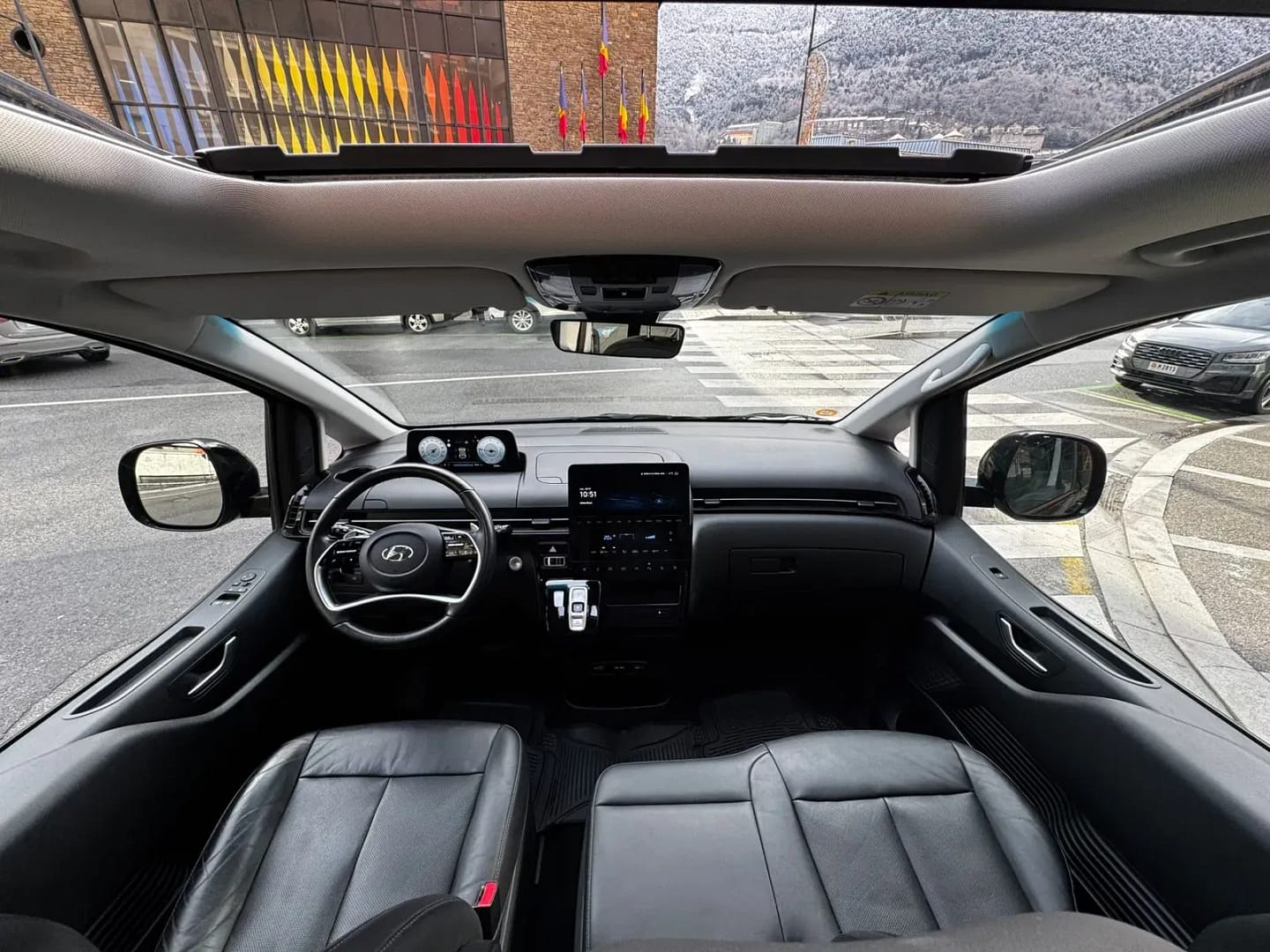 Hyundai Staria Style 2.2 CRDi 177cv 4×4 AT 9 places – Garantia oficial – Tracció a les quatre rodes (HTRAC) – Canvi automàtic amb leves al volant – Doble sostre solar practicable – Seients de pell amb ajust elèctric, calefacció i ventilació – Sistema de so Premium BOSE – Càmera de visió 360º – Pantalla tàctil de 10,25″ amb navegació i BlueLink – Apple CarPlay i Android Auto – Quadre d’instruments digital de 10,25″ – Fars Full LED – Doble porta lateral lliscant elèctrica – Portó posterior automàtic “mans lliures” – Control de creuer intel·ligent amb Stop & Go – Assistent de manteniment de carril i detector d’angle mort – Climatitzador automàtic trizona – Volant de cuir calefactable – Llandes d’aliatge de 18 polzades – Sensors d’aparcament davanters i darrere – Lunes posteriors sobretintades – Disponible a la nostra exposició.