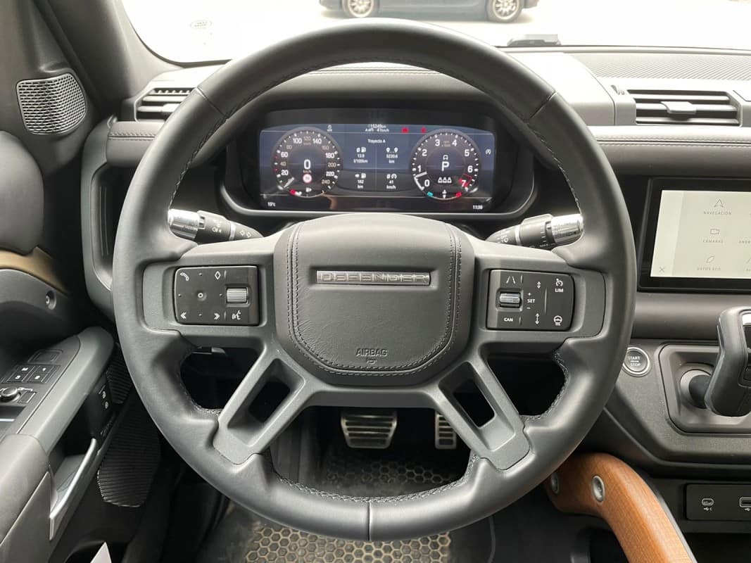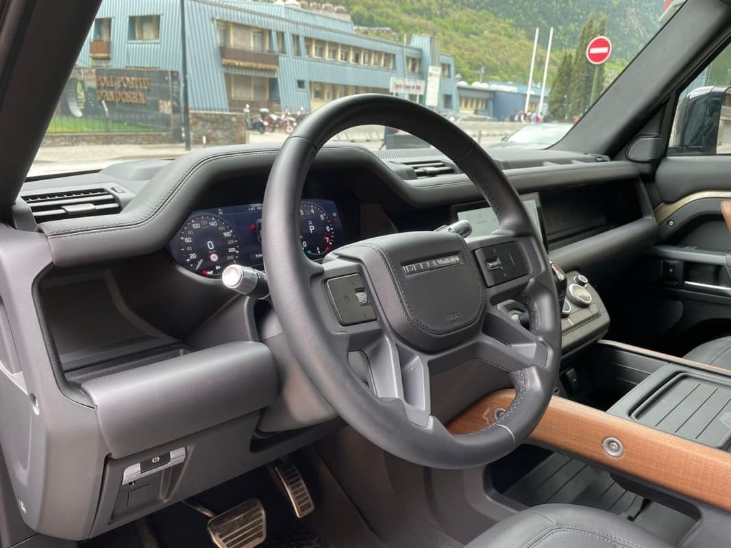 Aquesta unitat inclou: Land Rover Defender X 5p 110 P400 AWD Auto MHEV – 12 mesos de garantia – Transmissió automàtica de 8 velocitats amb reductora – Opcions incloses – Color Gondwana Stone amb pel·lícula protectora satinada – Seients de pell Windsor amb teixit Premium Ebony i amb interior Ebony – Teixit panoràmic lliscant – Llantes de 20 polzades satin dark Grey – Protector inferior davanter – Cold Climate Pack amb rentafaros, Parabrises tèrmic, Volant de pell calefactat – Confort and convivence Pack amb consola central refrigerada i dispositiu de càrrega sense fils – Gloss Black Signature Graphic exterior – Cristalls enfosquits de privacitat – Barres de sostre longitudinals en negre – Climatitzador trizona amb refrigeració posterior – Sensor de qualitat de l’aire – Ionitzador d’aire de l’habitacle – Towing Pack – Pet Loadspace Protection Pack – Ancoratges de recuperació en Orange – SecureTracker Pro – Wifi amb pla de dades – Assistència d’angle mort – Assistència de manteniment de carril – Configuració del vehicle en funció del terreny (Terrain Response) – Control de creuer adaptatiu – Control de pàrquing 360 graus – Faros Matrix LED amb llums antinboira – Reconèixer de senyals de trànsit – Accés i arrencada sense clau – Seients d’avant guardats elèctricament amb memòria, calefactats i ventilats – Quadre d’instruments virtual – Connected Navigation Pro amb pantalla tàctil de 10 polzades – Android Auto i Apple Carplay – Ràdio digital DAB..