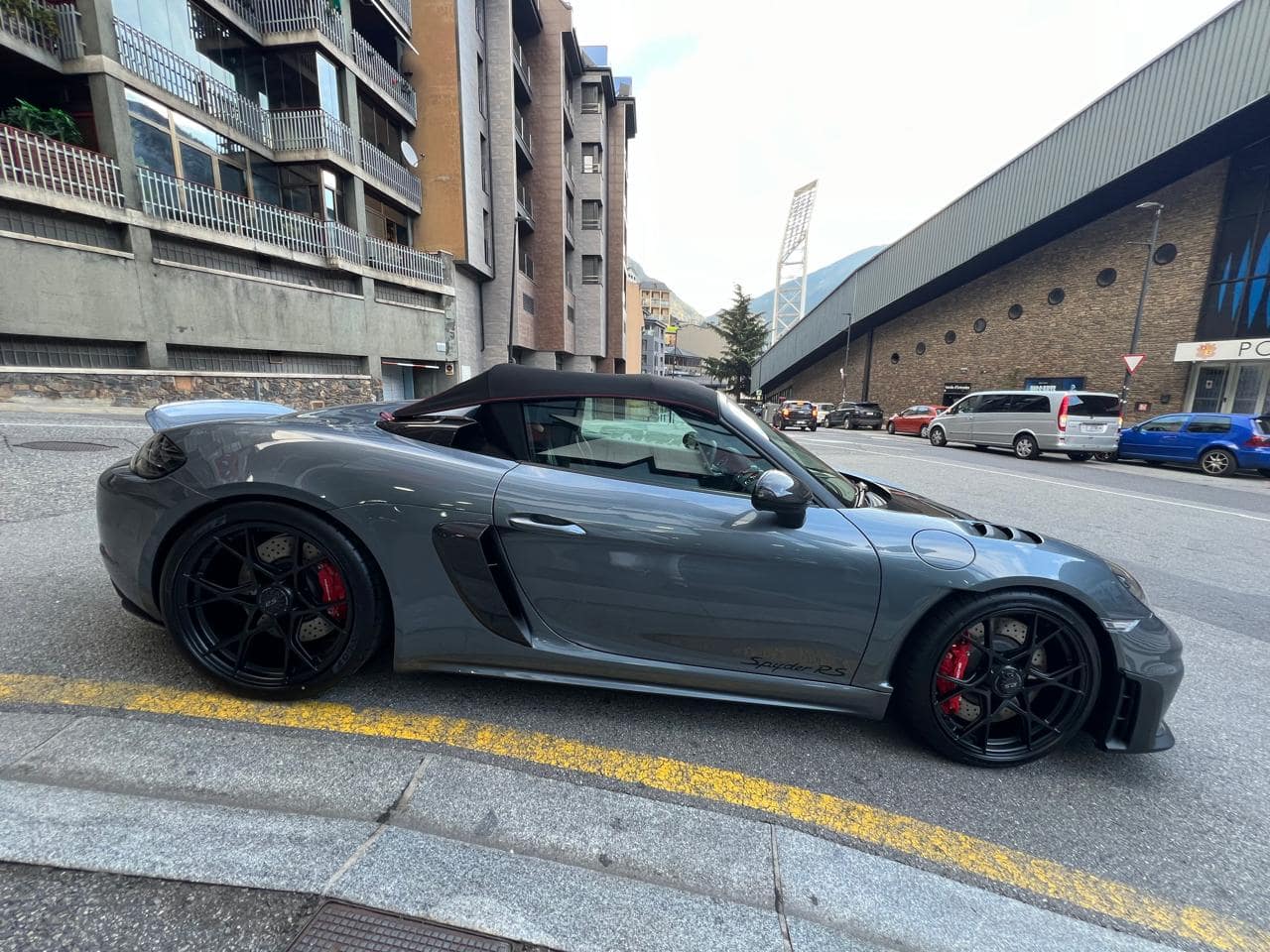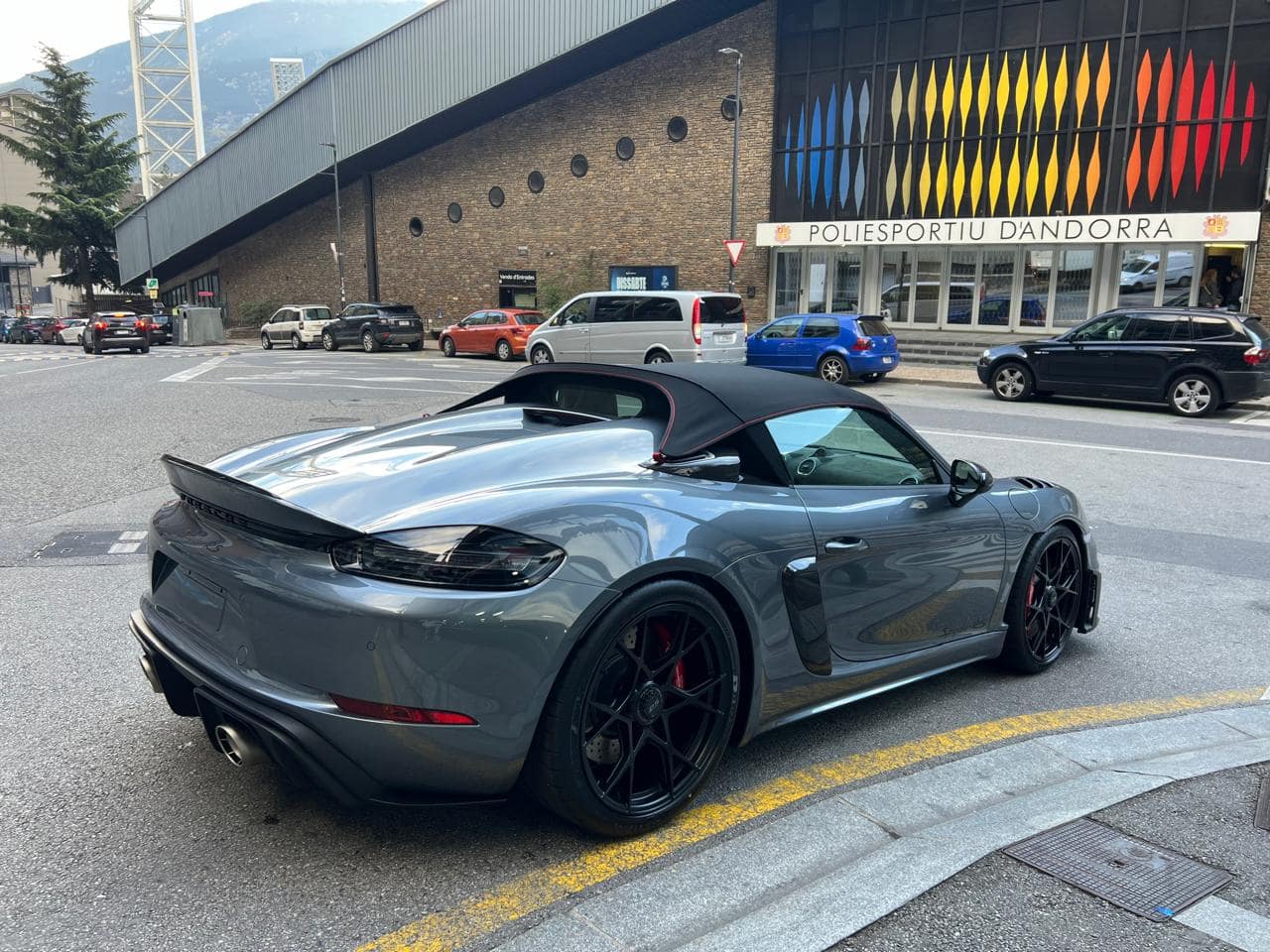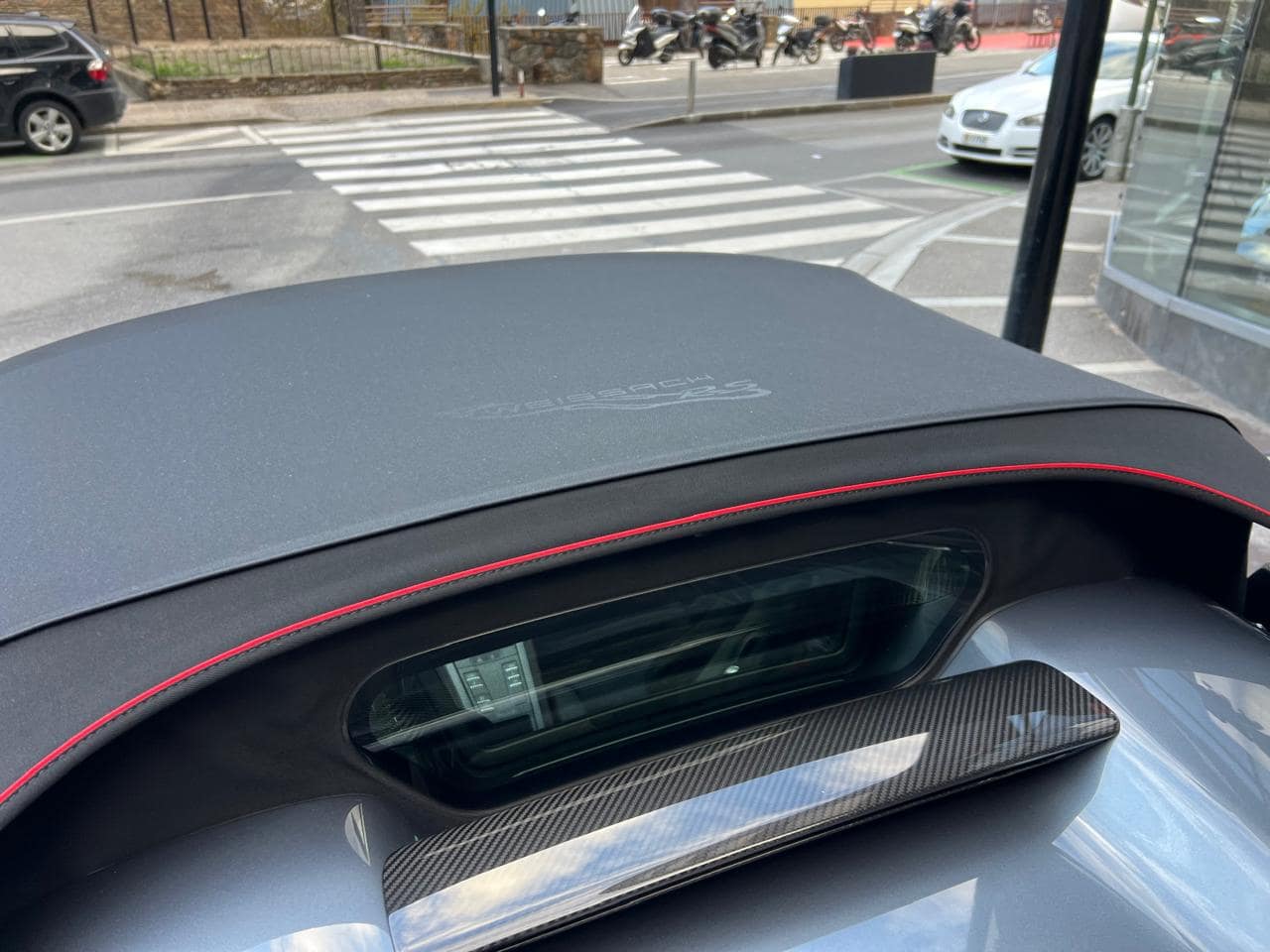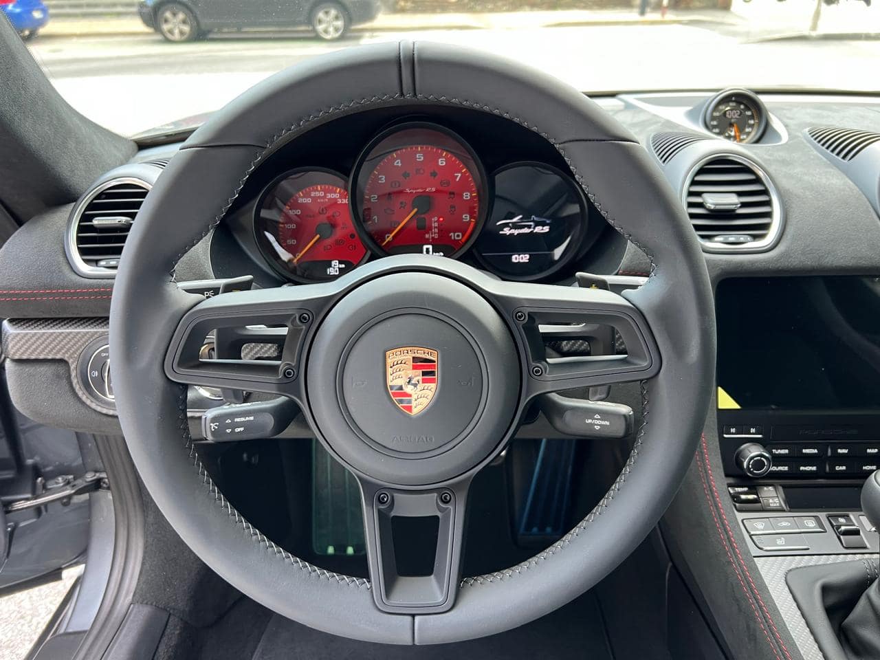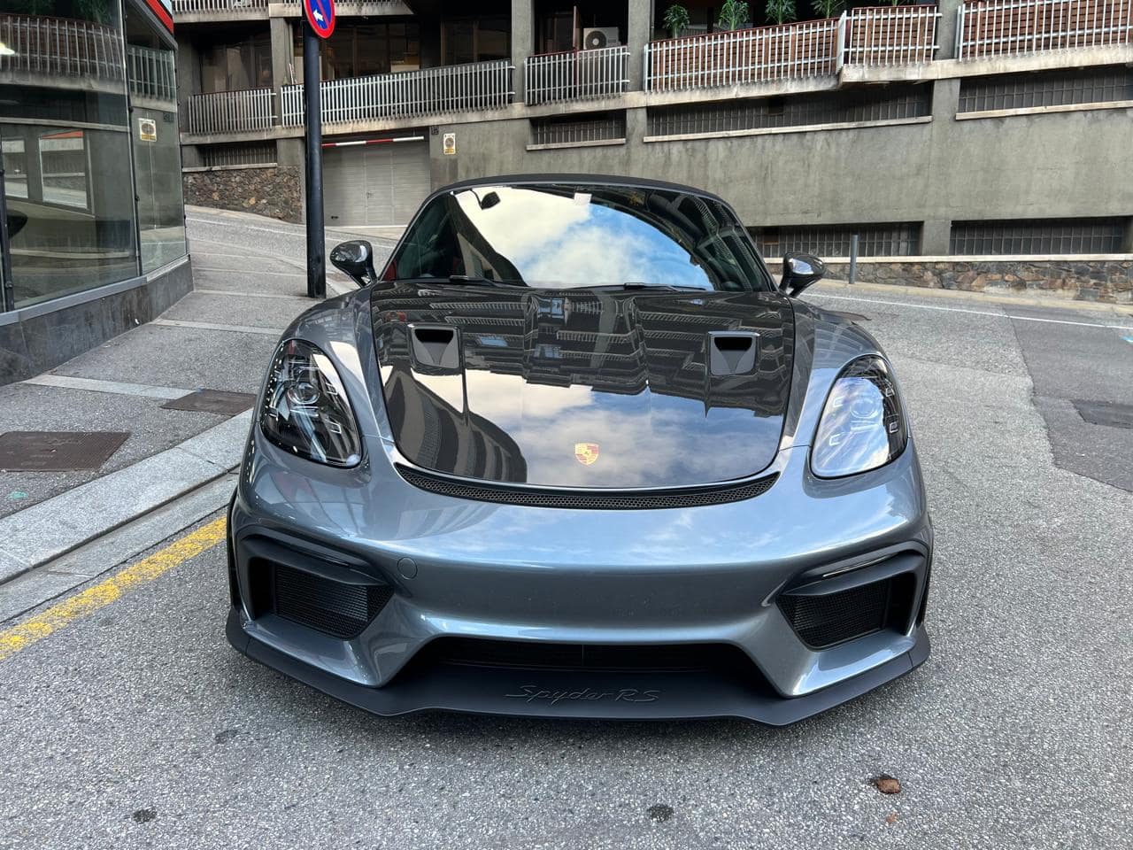 Porsche 718 Spyder RS Weissach 500CV – Color ext. Gris Vanadium Metal·litzat – Color capota Negre amb detalls Vermell Carmí – Llandes negre setinat GT4 RS 20″ – Color int. Race-Tex negre-vermell Carmí – Seients esportius adaptatius Plus elèctrics i calefactables – Paquet Weissach – Sistema elevació eix davanter – Paquet Sport Chrono – Dipòsit combustible 90L – PDK – Cinturons seguretat Vermell Guàrdia – Esferes del panell en Vermell Guàrdia – Ajuda aparcament Park Assist amb càmera marxa enrere – Control velocitat – Preparació per Dash Cam – Paquet il·luminació interior – Sistema de so BOSE – Apple CarPlay –