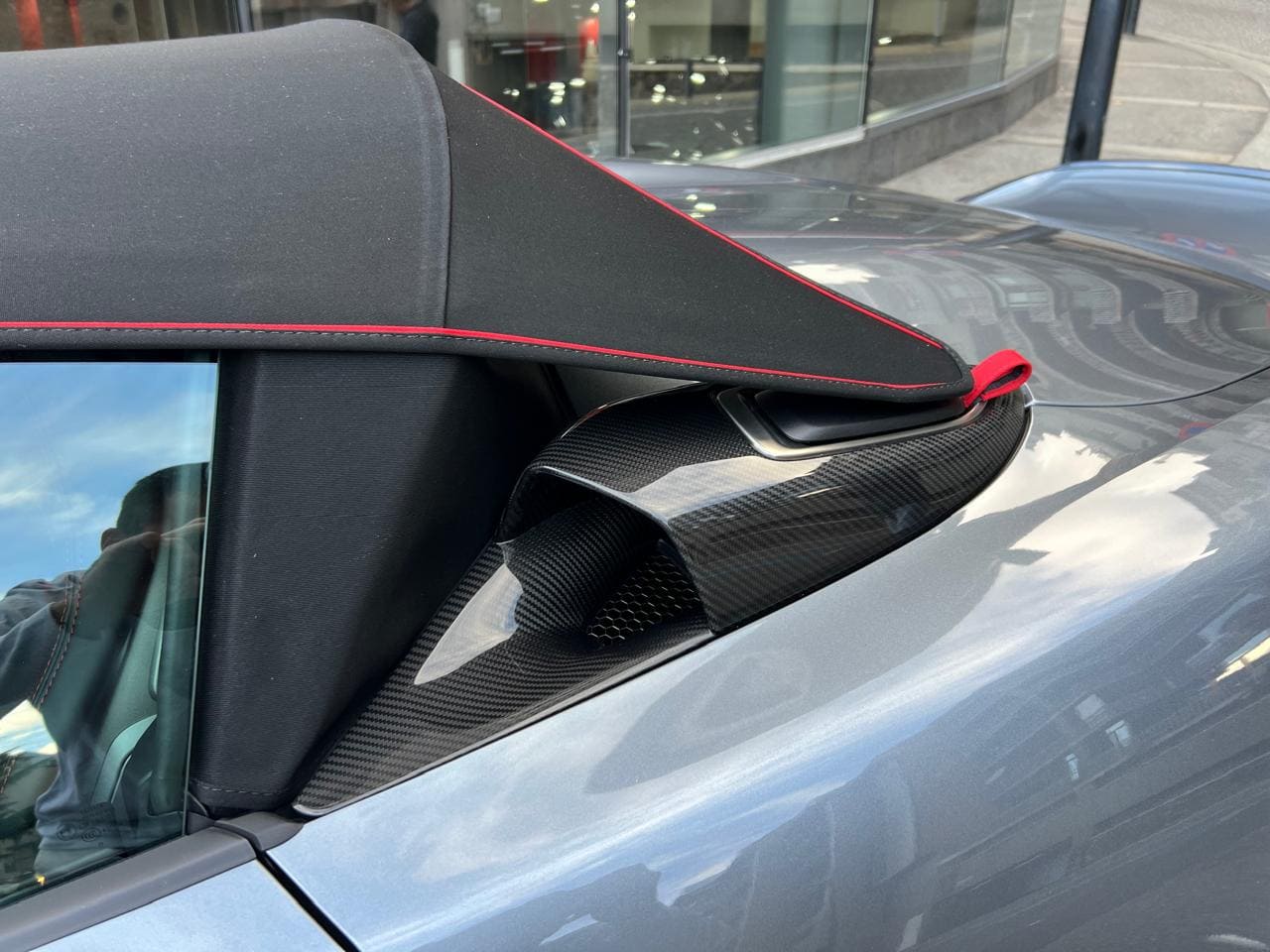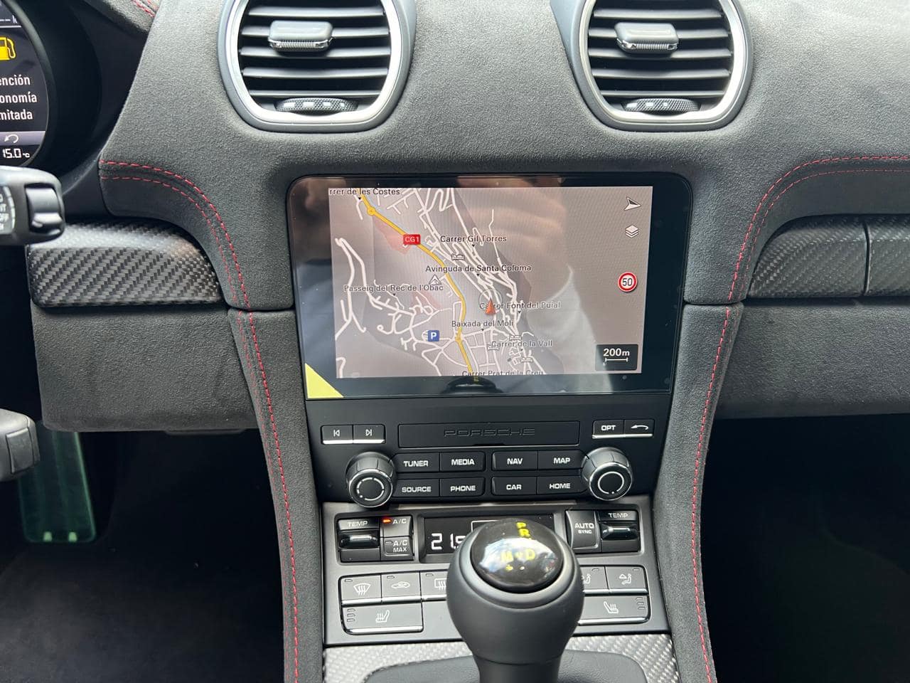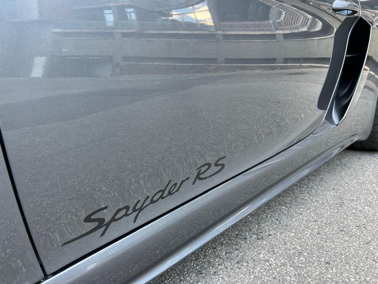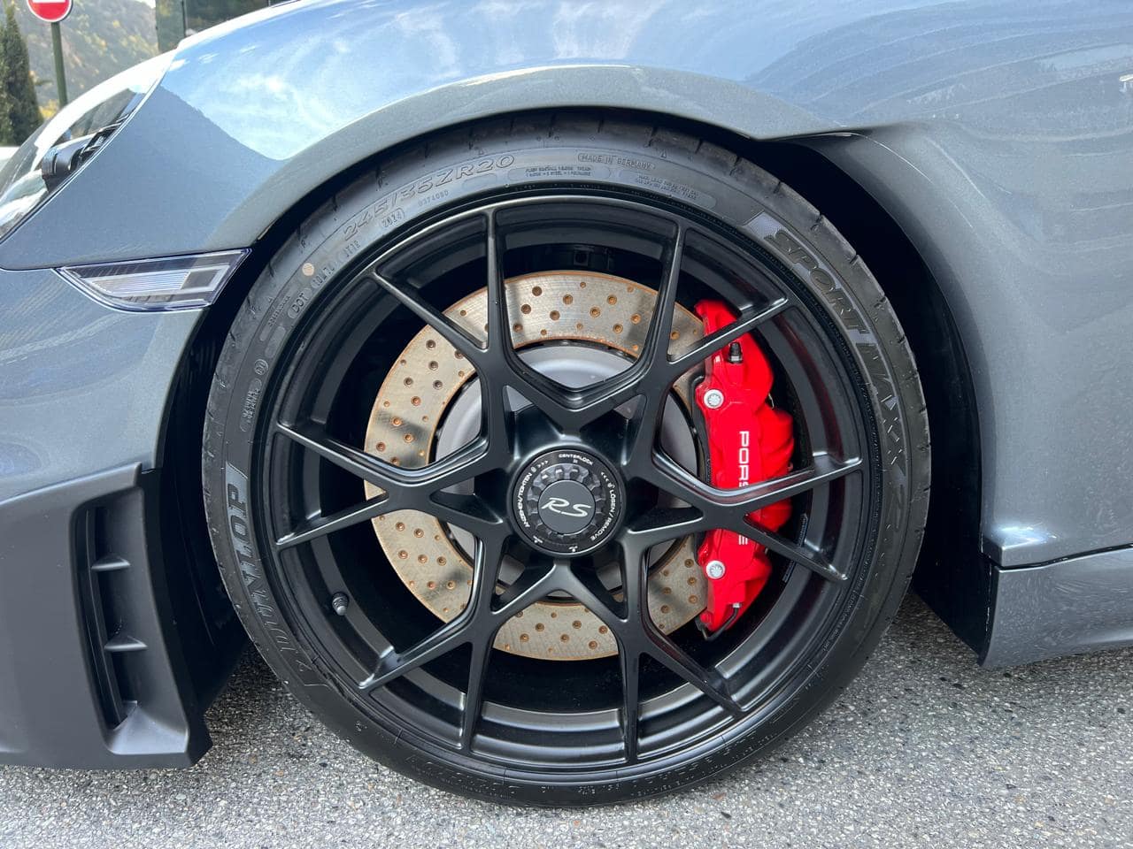 Porsche 718 Spyder RS Weissach 500CV – Color ext. Gris Vanadium Metal·litzat – Color capota Negre amb detalls Vermell Carmí – Llandes negre setinat GT4 RS 20″ – Color int. Race-Tex negre-vermell Carmí – Seients esportius adaptatius Plus elèctrics i calefactables – Paquet Weissach – Sistema elevació eix davanter – Paquet Sport Chrono – Dipòsit combustible 90L – PDK – Cinturons seguretat Vermell Guàrdia – Esferes del panell en Vermell Guàrdia – Ajuda aparcament Park Assist amb càmera marxa enrere – Control velocitat – Preparació per Dash Cam – Paquet il·luminació interior – Sistema de so BOSE – Apple CarPlay –