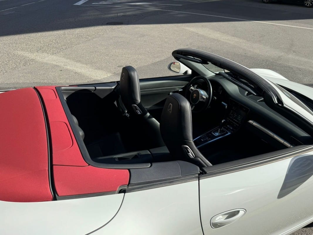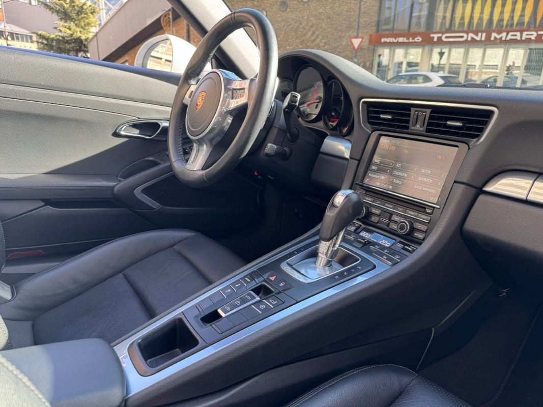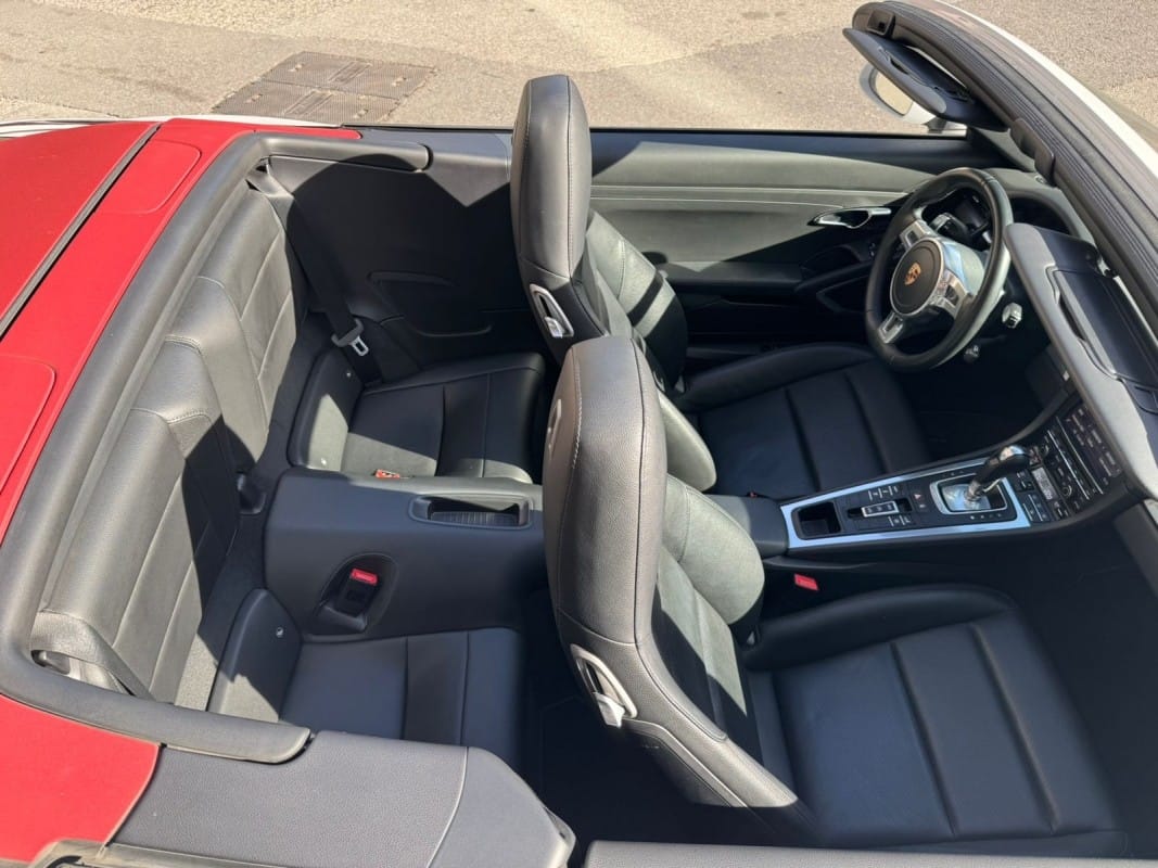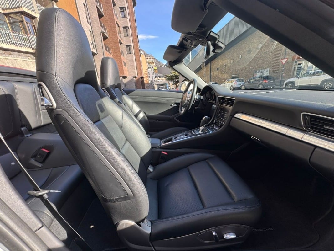 Motor atmosfèric de 3.8 litres – Canvi automàtic de doble embragatge PDK de 7 velocitats – Paquet Sport Chrono Plus amb selector de modes de conducció i Launch Control – Suspensió activa Porsche Active Suspension Management (PASM) – Llandes d’aliatge de 20 polzades Carrera Classic – Pinces de fre en color vermell – Faros Bi-Xenon amb Porsche Dynamic Light System (PDLS) – Seients esportius amb ajust elèctric de respatller i ajust manual longitudinal – Tapisseria en cuir complet color negre – Capota de lona en color Roig Borgonya – Rellotges i instruments amb fons en color plata – Motllures interiors en acabat plata galvanitzada – Deflector de vent amb desplegament elèctric – Sensors d’aparcament davanters i posteriors – Sistema de navegació Porsche Communication Management (PCM) – Connectivitat Bluetooth per a telefonia i àudio – Volant esportiu amb lleves per al canvi PDK – Control de velocitat automàtic (Tempostat) – Climatitzador automàtic bizonat – Disponible a la nostra exposició – 12 mesos de garantia.