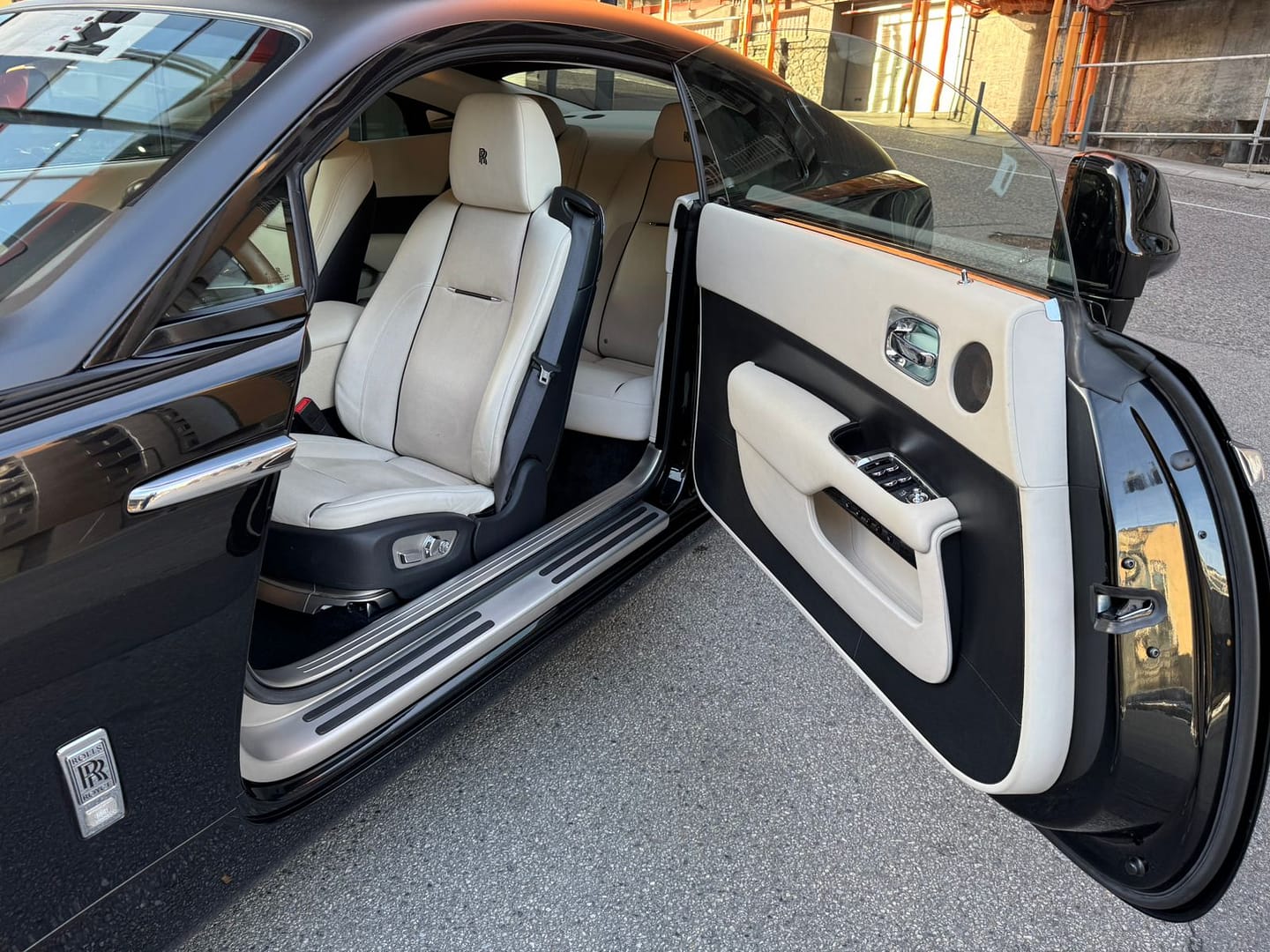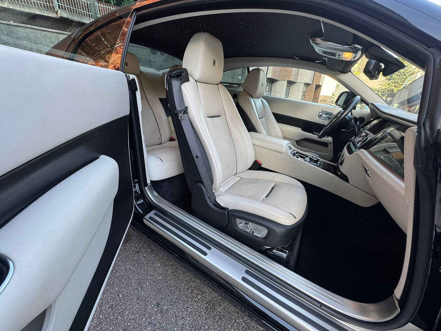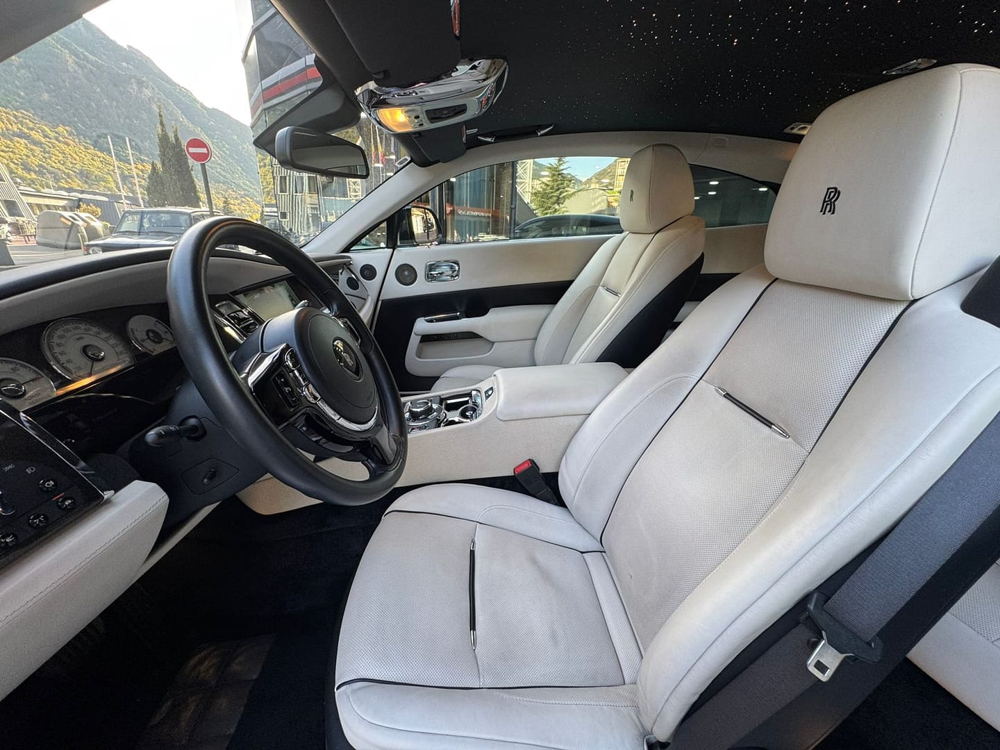 Rolls-Royce Wraith Coupé V12 634 cv – Opcionals inclosos: Fars adaptatius amb canvi de llums de carretera – Sistema d’accés confort – Càmera de visió de 360 graus – Seients davanters actius, calefactats i ventilats – Tapisseria en cuir beix – Llum ambiental – Visió nocturna amb reconeixement de persones – Assistent de conducció Plus – Advertència de desviació de carril – Funció de TV – Sistema de Navegació Professional – Head Up Display – Sintonitzador Dab – Vidres individuals de protecció solar – Sostre interior de cuir estès amb Leds – Logotips Als Reposacaps – Llandes forjades de 21 polzades bicolor – Tubs d’escapament dobles visibles – Rolls-Royce Bespoke Audio – Sistema de seguiment de vehicles – Disponible a la nostra exposició –