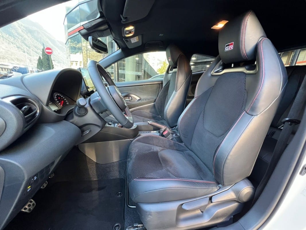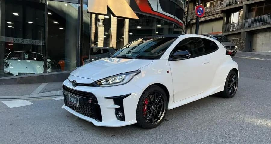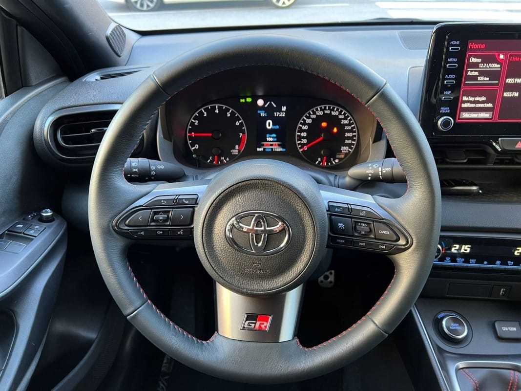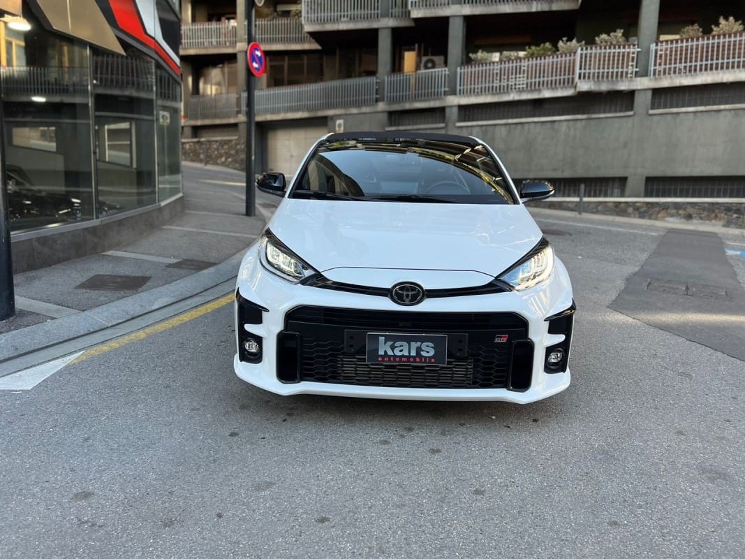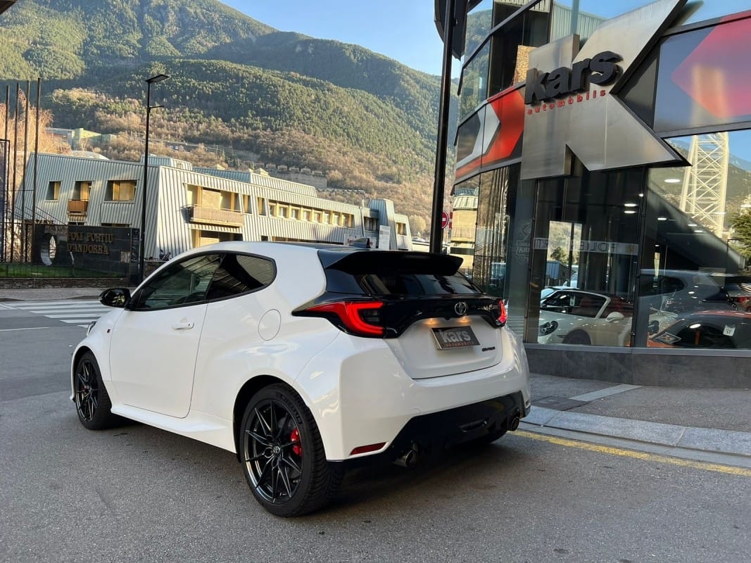 Toyota GR Yaris Circuit Pack 261cv – 12 mesos de grantia – Diferencials davanter i del darrere tipus Torsen – Suspensió GR per a circuit – Pinces de fre de color vermell – Llandes d’aliatge forjades en 18 polzades – Tracció total GR-FOUR – Sostre de carboni – Fars LED adaptatius – Accés i arrencada sense clau – Càmera de visió del darrere – Climatitzador automàtic de dues zones – Seients davanters esportius entapissats en cuir i alcàntara – Sensor de llums i pluja automàtic – Llunes del darrere sobretintades – Retrovisors exteriors orientables i plegables elèctricament i calefactes digital – Volant esportiu de cuir de 3 ràdios amb multifunció – Android Auto / Apple CarPlay – Connexió Bluetooth per a telèfon mòbil – Connexió USB – Ràdio digital – Assistència de canvi de carril – Avisador de frenada d’emergència (EBS) – Control de creuer adaptatiu – Reconeixement de senyals de trànsit – Retrovisor interior electrocròmic – Només 10.000 km – Disponible a la nostra exposició –