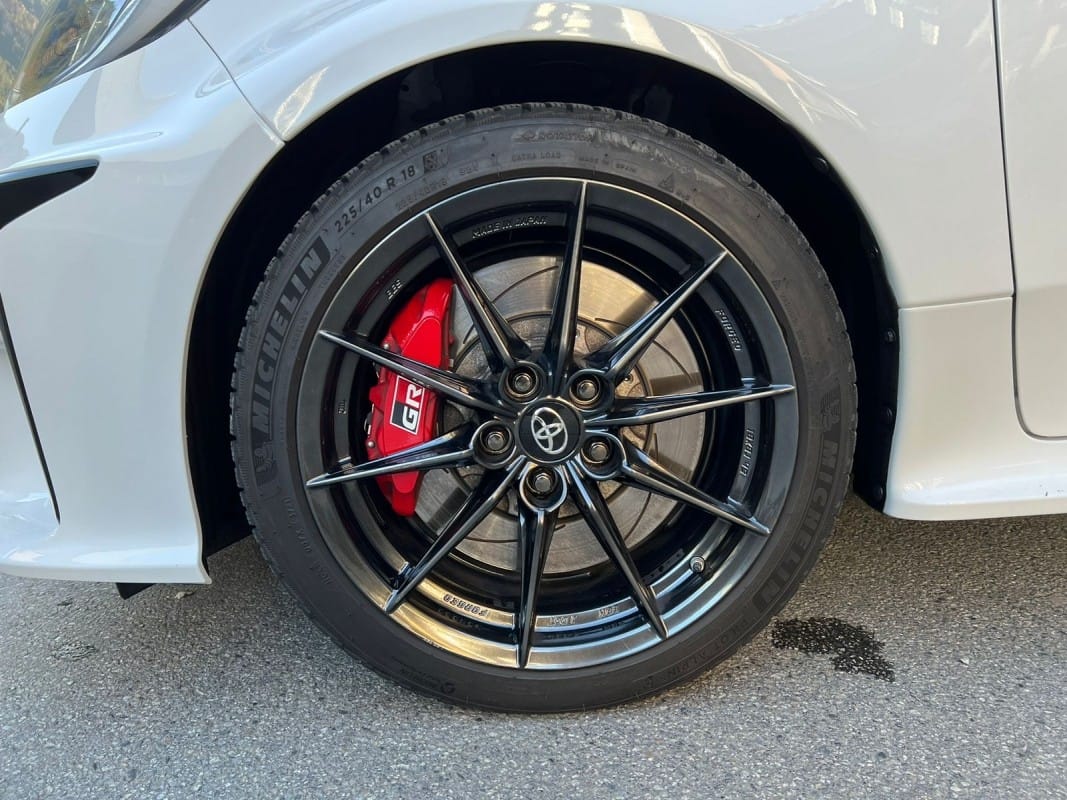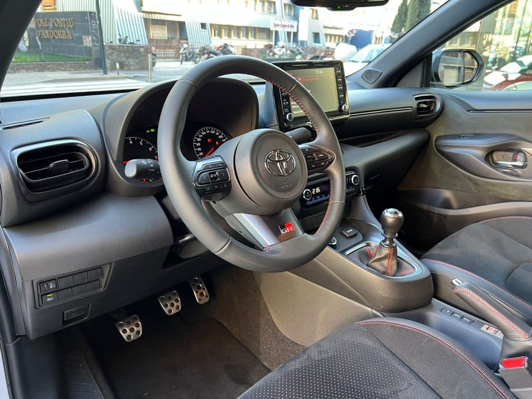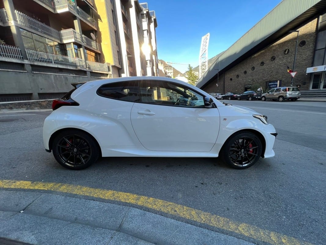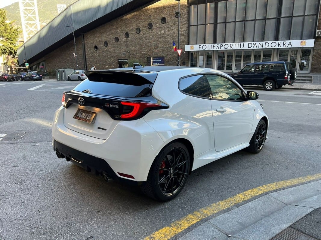 Toyota GR Yaris Circuit Pack 261cv – 12 mesos de grantia – Diferencials davanter i del darrere tipus Torsen – Suspensió GR per a circuit – Pinces de fre de color vermell – Llandes d’aliatge forjades en 18 polzades – Tracció total GR-FOUR – Sostre de carboni – Fars LED adaptatius – Accés i arrencada sense clau – Càmera de visió del darrere – Climatitzador automàtic de dues zones – Seients davanters esportius entapissats en cuir i alcàntara – Sensor de llums i pluja automàtic – Llunes del darrere sobretintades – Retrovisors exteriors orientables i plegables elèctricament i calefactes digital – Volant esportiu de cuir de 3 ràdios amb multifunció – Android Auto / Apple CarPlay – Connexió Bluetooth per a telèfon mòbil – Connexió USB – Ràdio digital – Assistència de canvi de carril – Avisador de frenada d’emergència (EBS) – Control de creuer adaptatiu – Reconeixement de senyals de trànsit – Retrovisor interior electrocròmic – Només 10.000 km – Disponible a la nostra exposició –