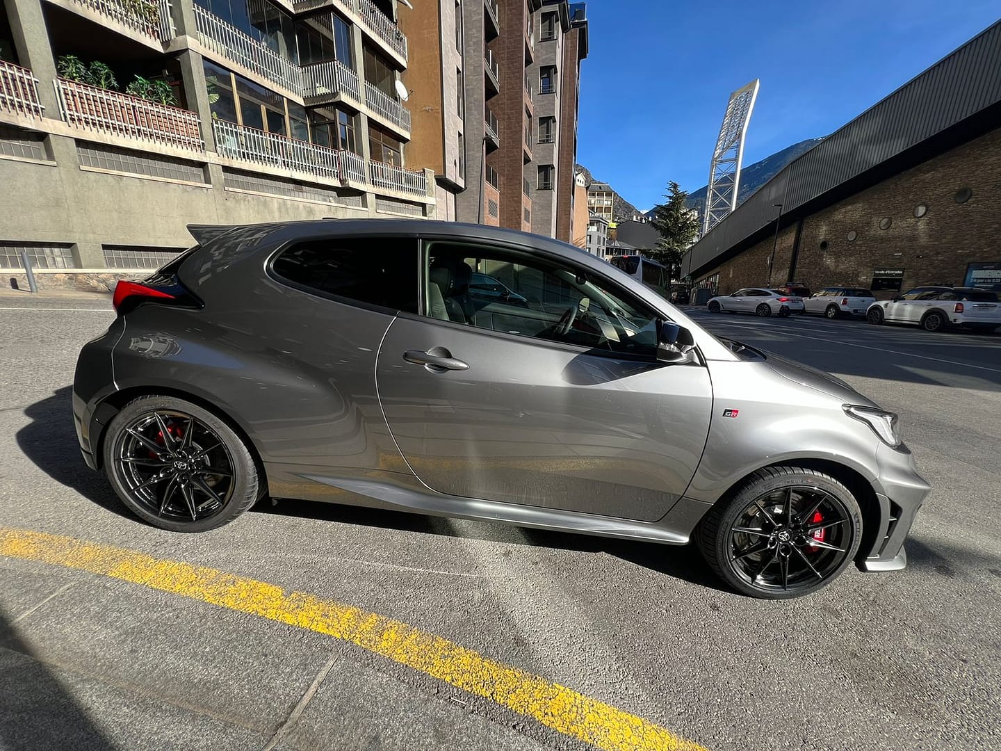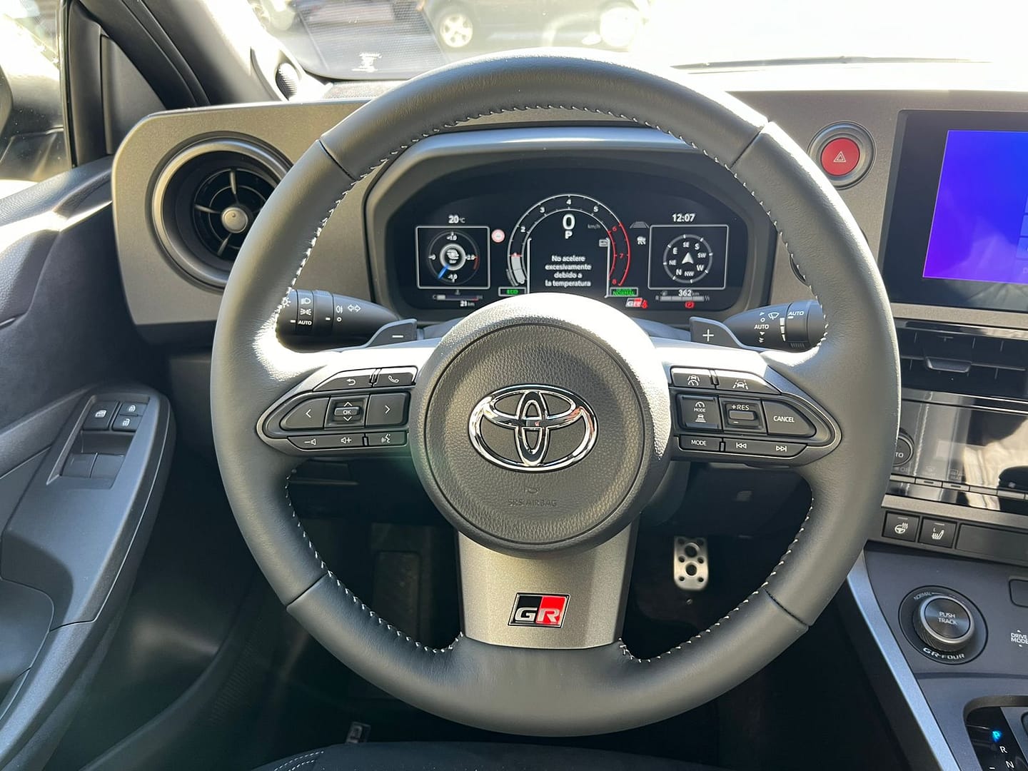 Toyota GR Yaris – Transmissió automàtica de 8 velocitats 4×4 – Paquet Touring Plus – Paquet Circuit – Paquet Techno – Llantes d’aliatge forjades – Pintura premium gris platí – Audio premium JBL – Faros LED adaptatius – Apple CarPlay i Android Auto sense fils – Tapisseria Premium Sport i ante negre amb costures vermelles i cinturons de seguretat vermells – Assistència d’aparcament davanter, posterior amb càmera – Seients davanters esportius, regulables en alçada – Control de creuer adaptatiu – Accés i arrencada sense clau – Detector de vehicles en angle mort – Alerta de tràfic posterior i assistent de sortida segura – Alerta de canvi involuntari de carril – Assistent de llum de carretera – Mandos multifunció al volant – Quadre d’instruments digital – Reconèixement de senyals de trànsit – Retrovisor interior amb antienlluernament automàtic – Climatitzador bi-zona – Vidres posteriors tintats – Carcasses de retrovisors exteriors en negre – Pinces de fre pintades en vermell – Garantia oficial –