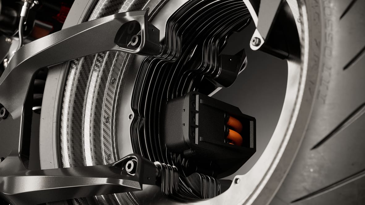 Aquest sistema elimina completament la transmissió tradicional, redueix el pes i simplifica la mecànica. El conjunt, d’uns 21 kg, s’acobla directament al basculant, configurant una arquitectura tan radical com eficient.