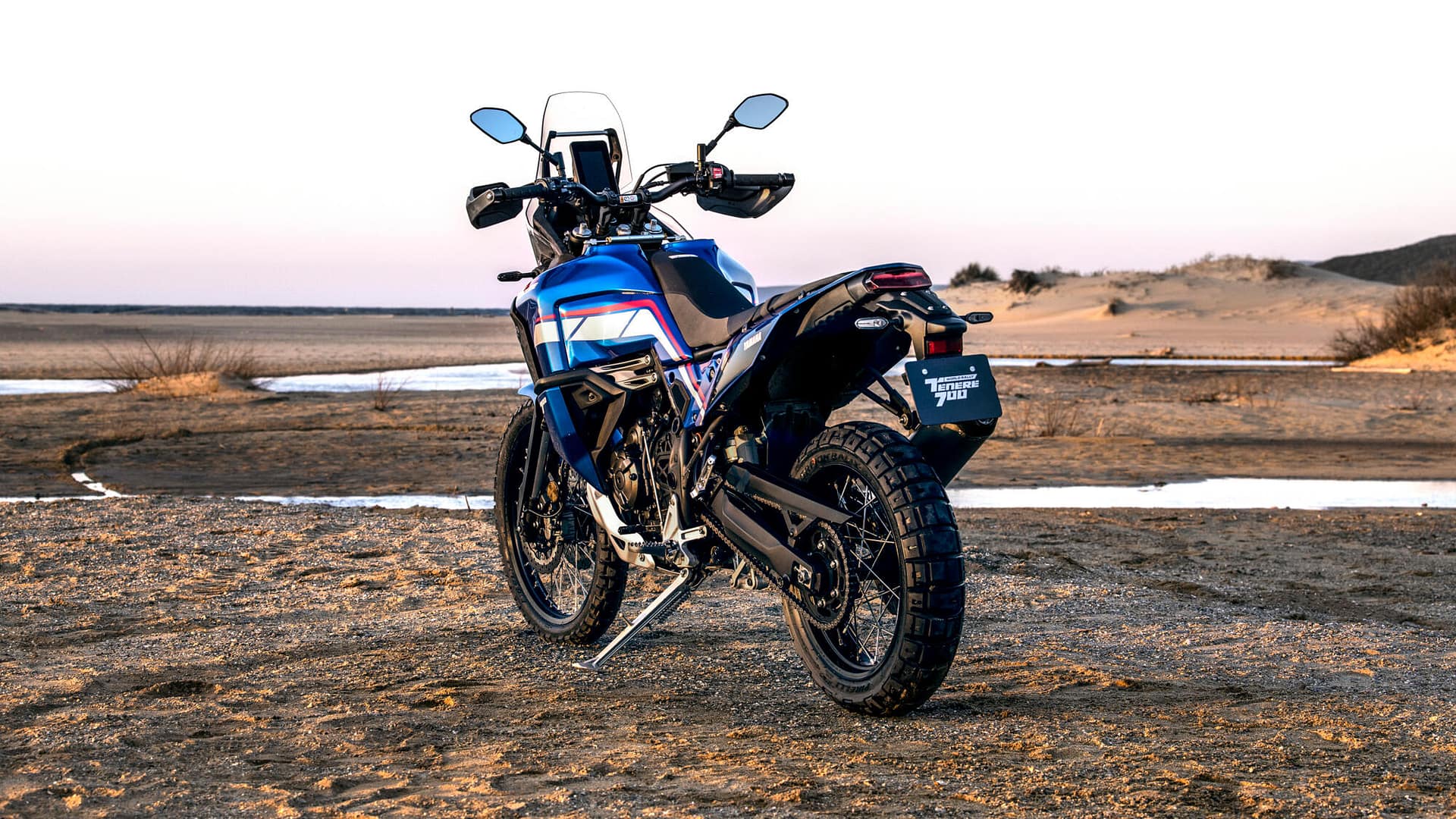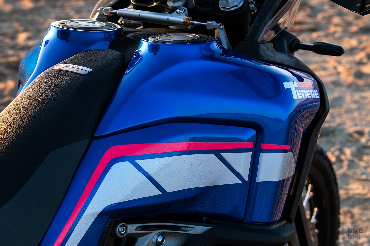Aquesta nova edició 2023 llueix la mateixa estètica que la Ténéré amb la que Stéphane Peterhansel va guanyar el Dakar l’any 1993, és a dir, blau intens com a color principal i una traçada irregular a base de segments de color blau clar i vermell que van d’extrem a extrem.